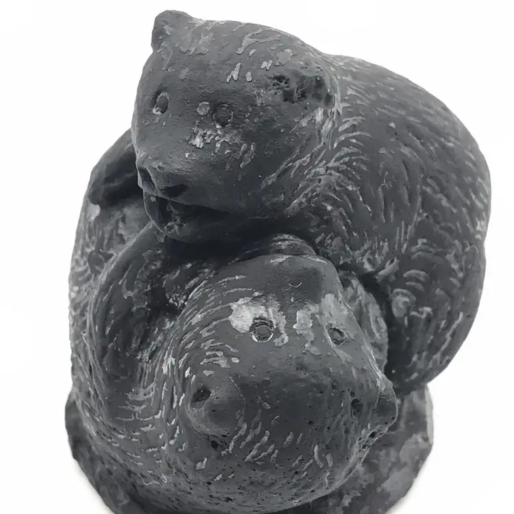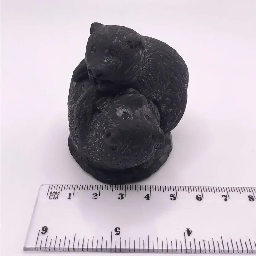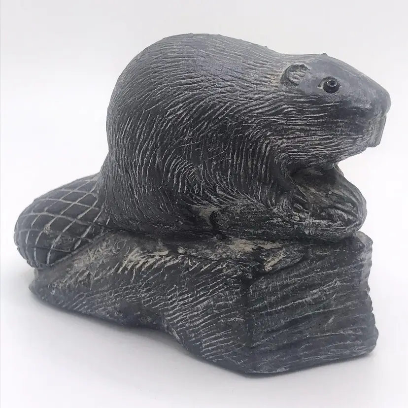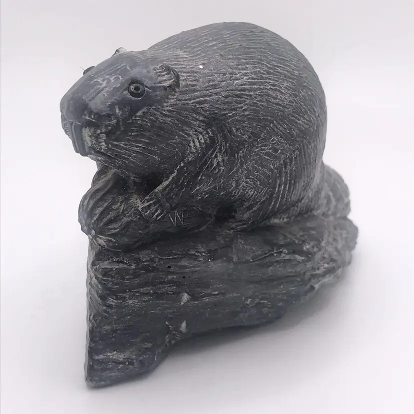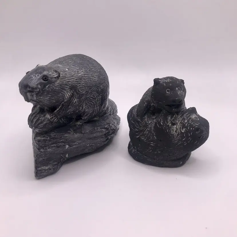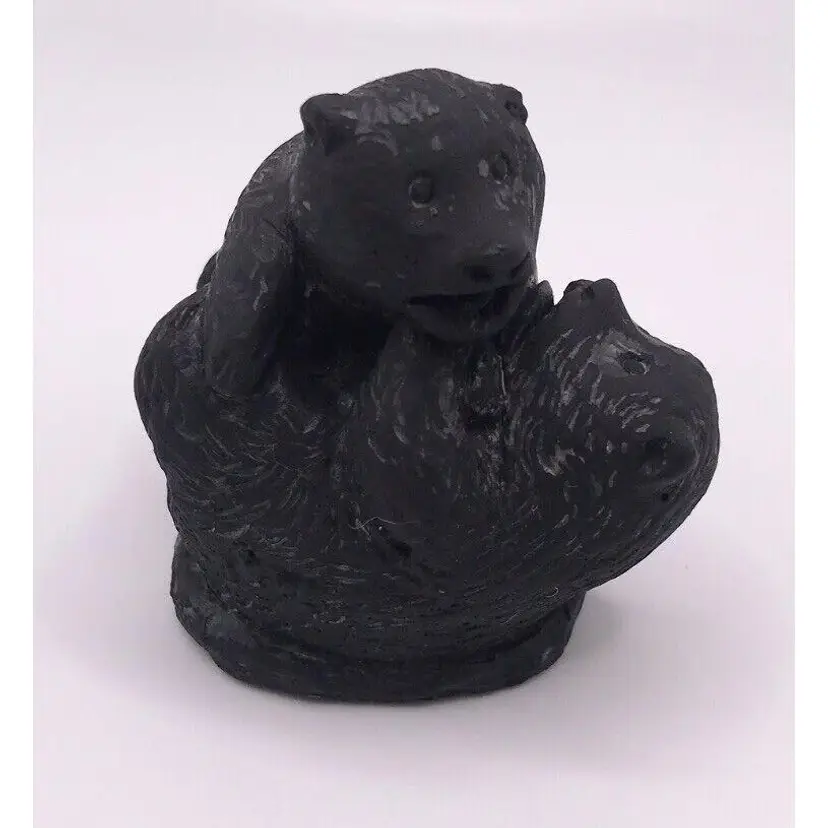Sculptures of Canada Black Soapstone Made in Canada Beaver chomping wood and two bears playing 3" x 3" Beaver and 2" x 2: Bears