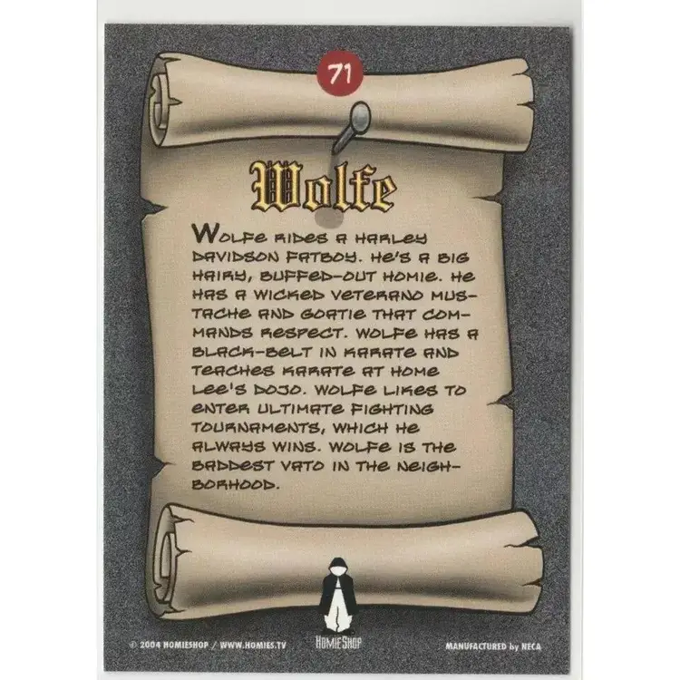 Wolfe #71 Homies Swap Cards 2004 NECA Lowrider Chicano Barrio East LA Culture trading card