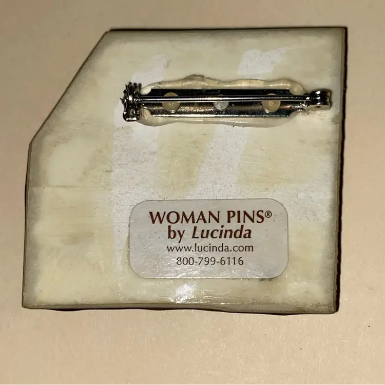 Condition: Very detailed and dimensional. Pin is in excellent vintage condition. Has ‘Woman Pins by Lucinda’ sticker on the back.
