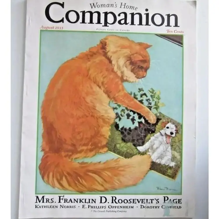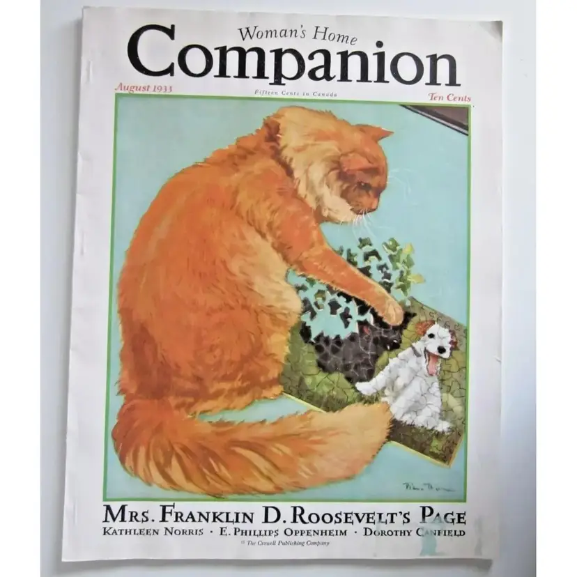 Woman's Home Companion August 1933 magazine. This a vintage magazine with fashion, Interesting stories and advertisements. The magazine is large sized at 10 1/2" x 14". This magazine is full of super interesting and funny to us now articles. This is also when there were more color illustrations added too.