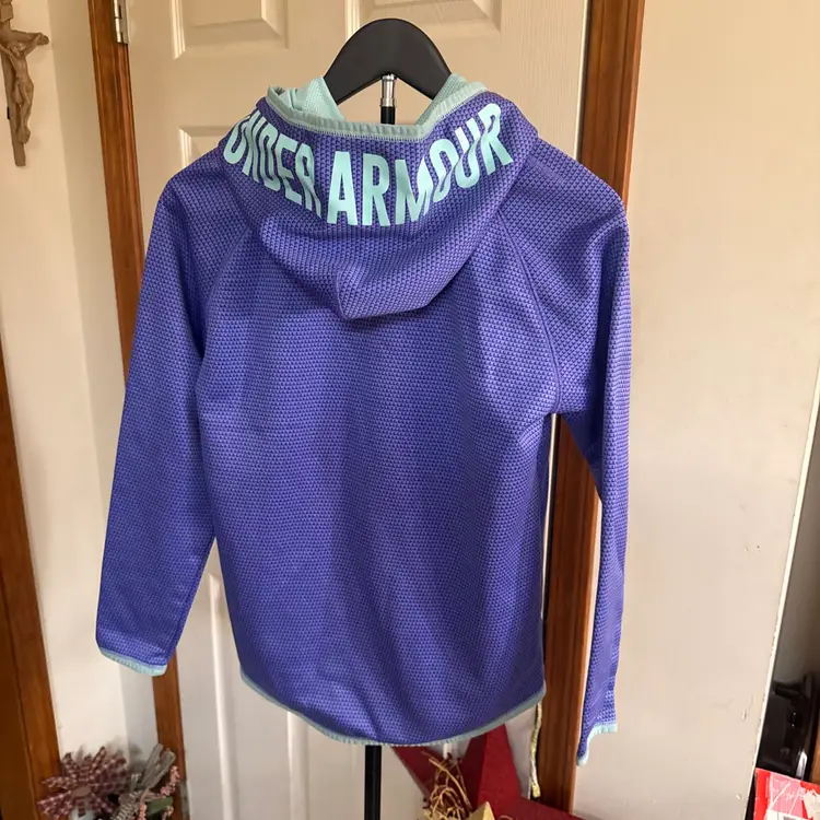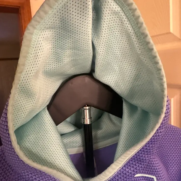 Hoodie is lightly used but in great shape it is missing the pull stings to the hood