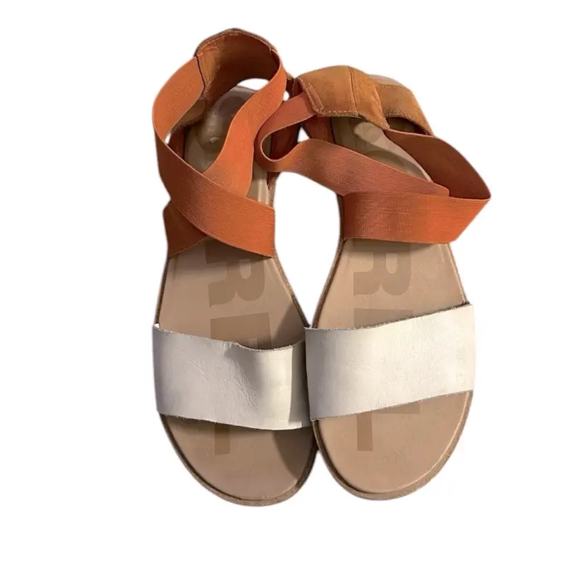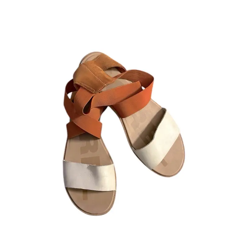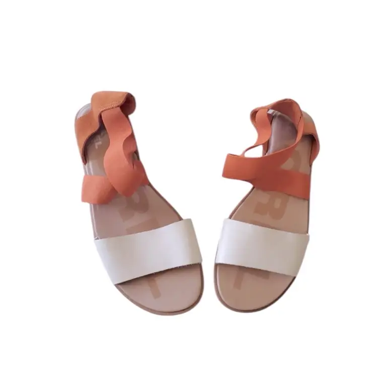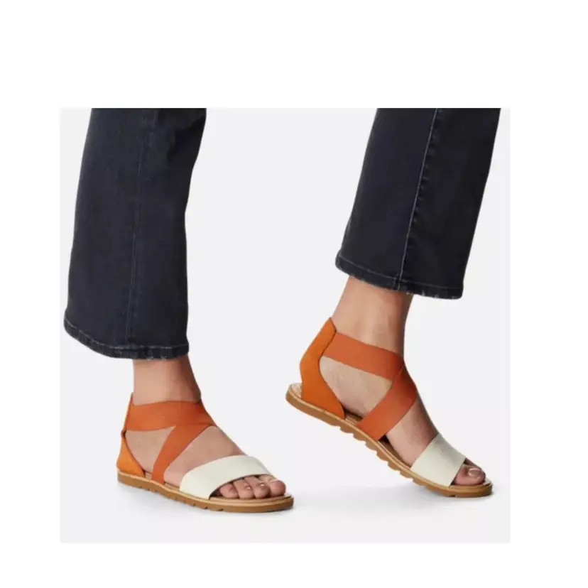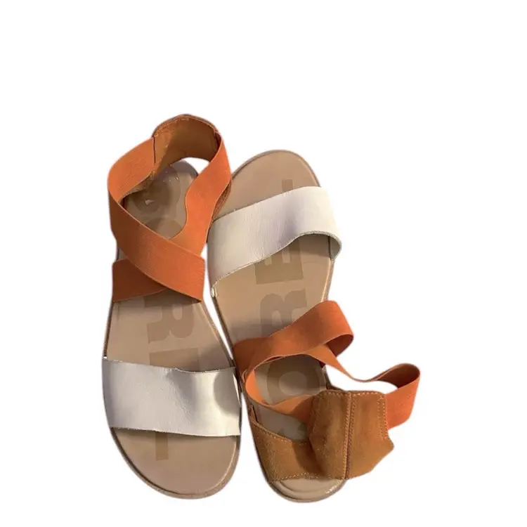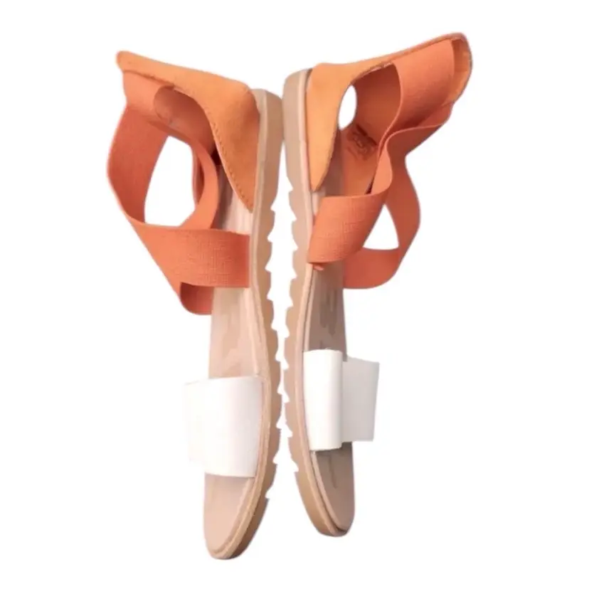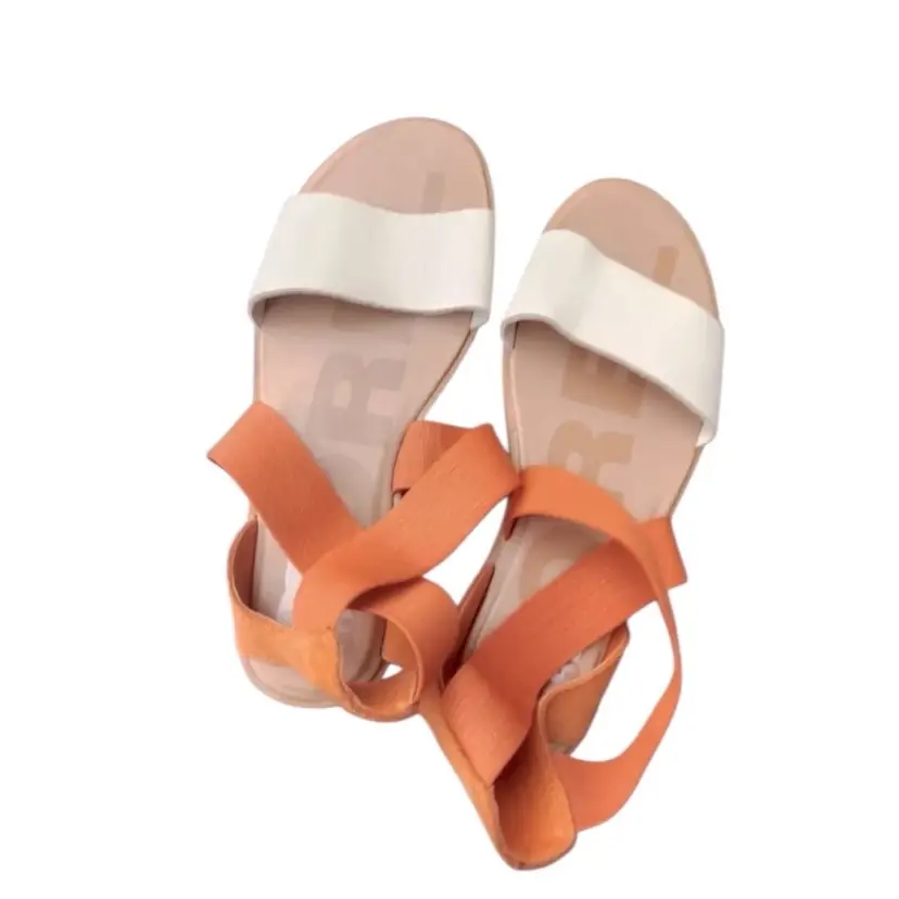 Stylish women's strappy sandals in a chic orange and white combo. Perfect for casual outings and summer vibes. Comfortable and trendy!