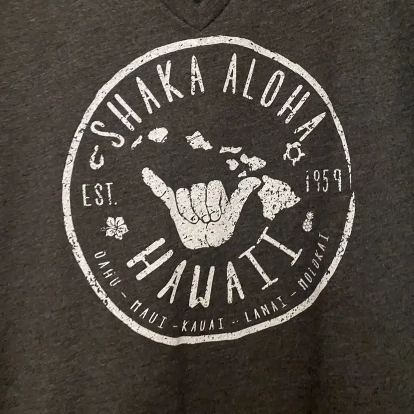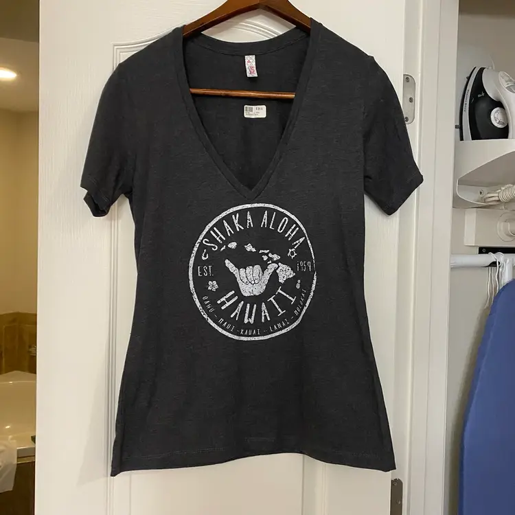 Womens Dark Gray V Neck Tee T Shirt 2XL 40” Shaka Aloha Hawaii New NWOT Brand new - tags were removed 100% Cotton Made by Alstyle Pit to pit across is 20” for bust measurement of 40” Length 26” #hawaii #hawaiian #graphictee #hangten