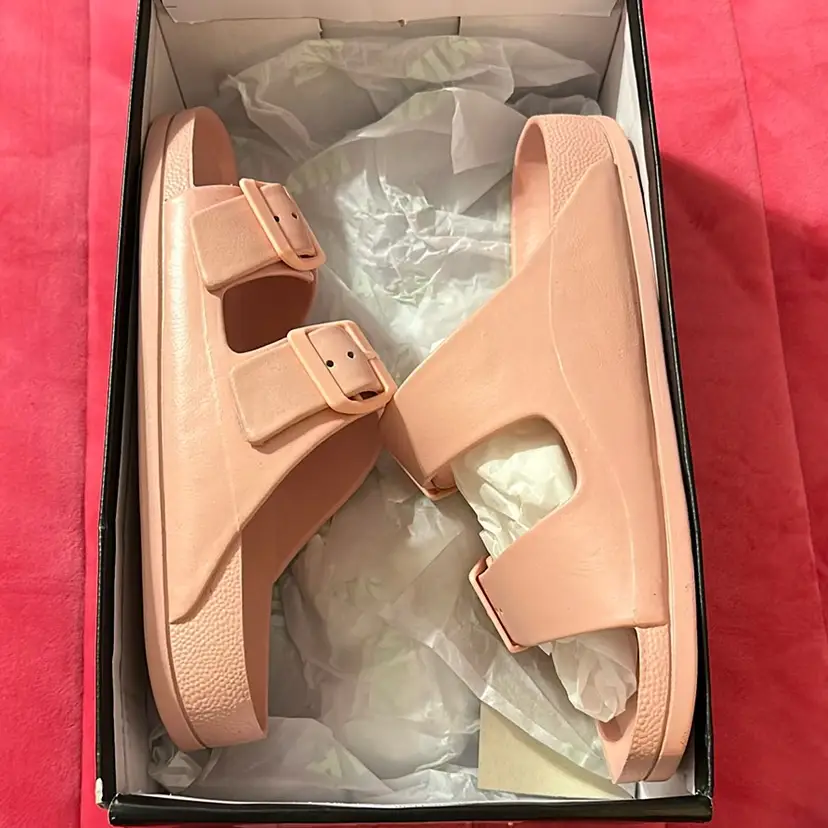 New Women’s Jasmin 2 Band Sandals Size 8M Color Blush PVC Slip-on 1” heel Medium width Material EVA Style GS170715411