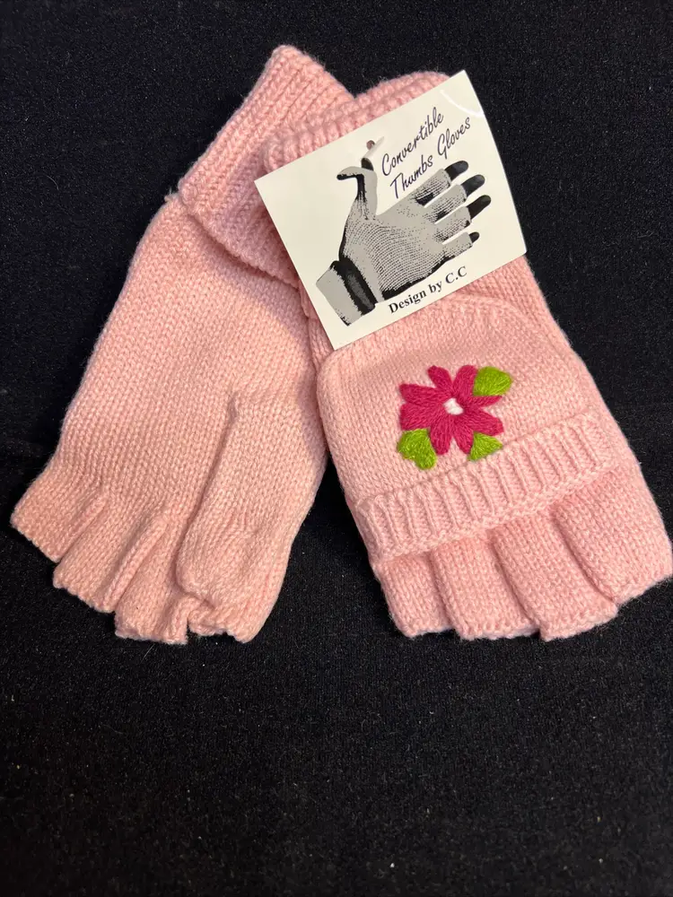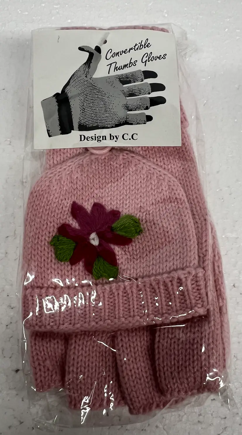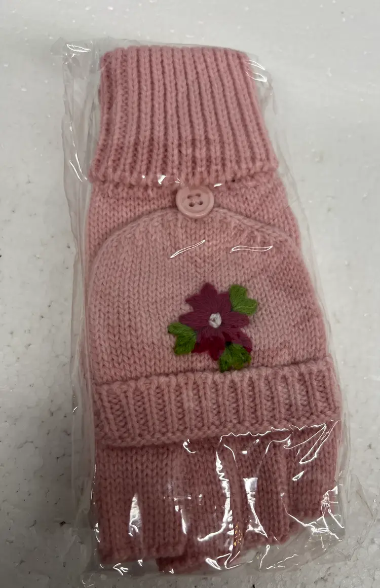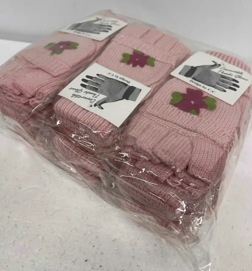 Women's Knit Fingerless Gloves w Mitten Flap PINK FLORAL 12pk NEW Selling in packages of 12. All are brand new. These retail for around $10-12 each.