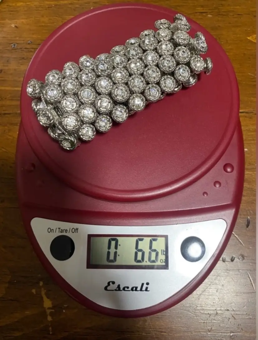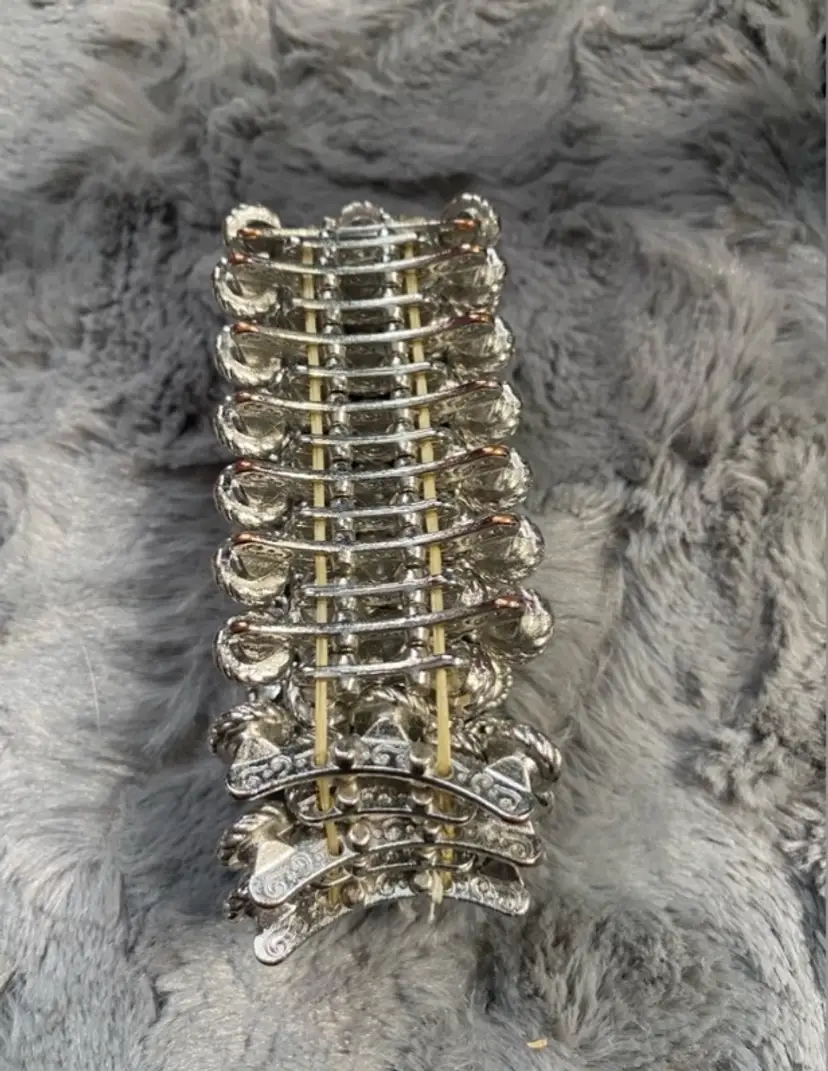 Impressive! Sparkles & shines! This beautiful stretch bracelet weighs in at 6.6 ounces and has alternating 3 and 2 gem pieces connected by heavy duty stretch cord. Approximately 1.5” in width and 4” diameter. 5 ⭐️ seller and fast shipping. Make it yours today ❤️