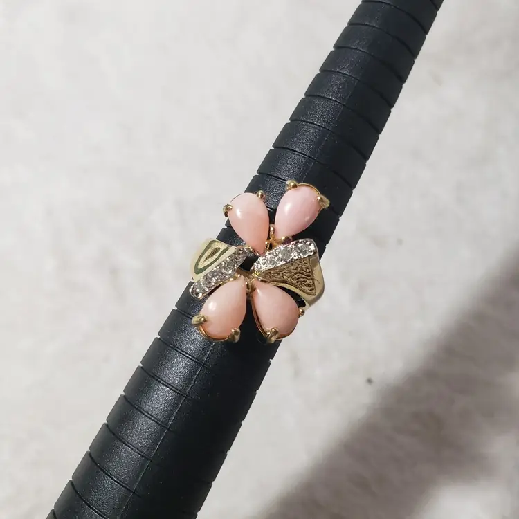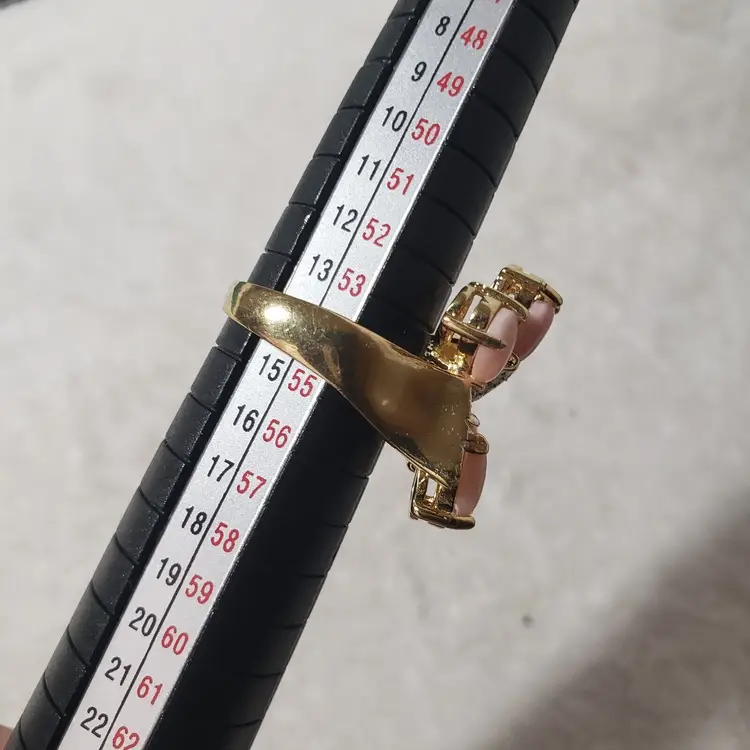 Shape: Teardrop Color: Pink Main Stone Color: White Year Manufactured: 1990-1999 Metal: Multi-Tone Gold Plated Jewelry Department: Fashion Ring Size: 6.75 Brand: Cci Setting Style: Cluster Department: Women Type: Ring Theme: Retro Base Metal: Gold Style: Cocktail Number of Gemstones: 3 Country of Origin: United States