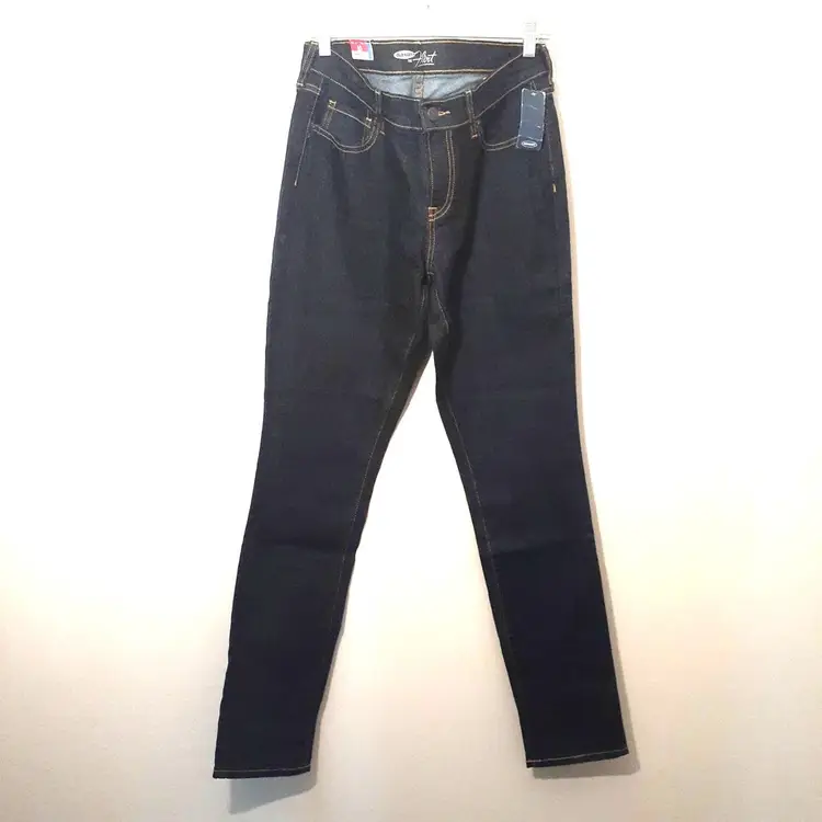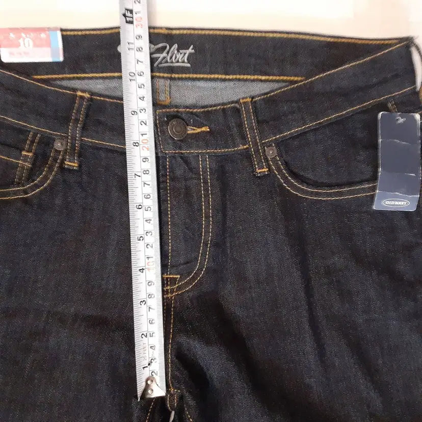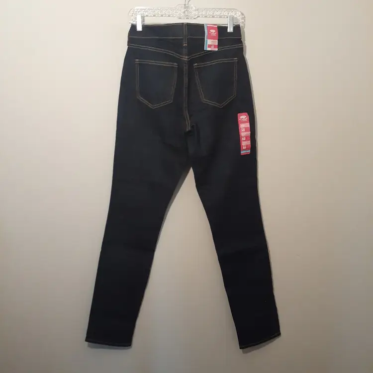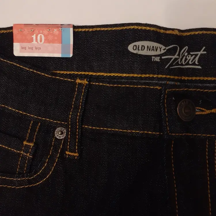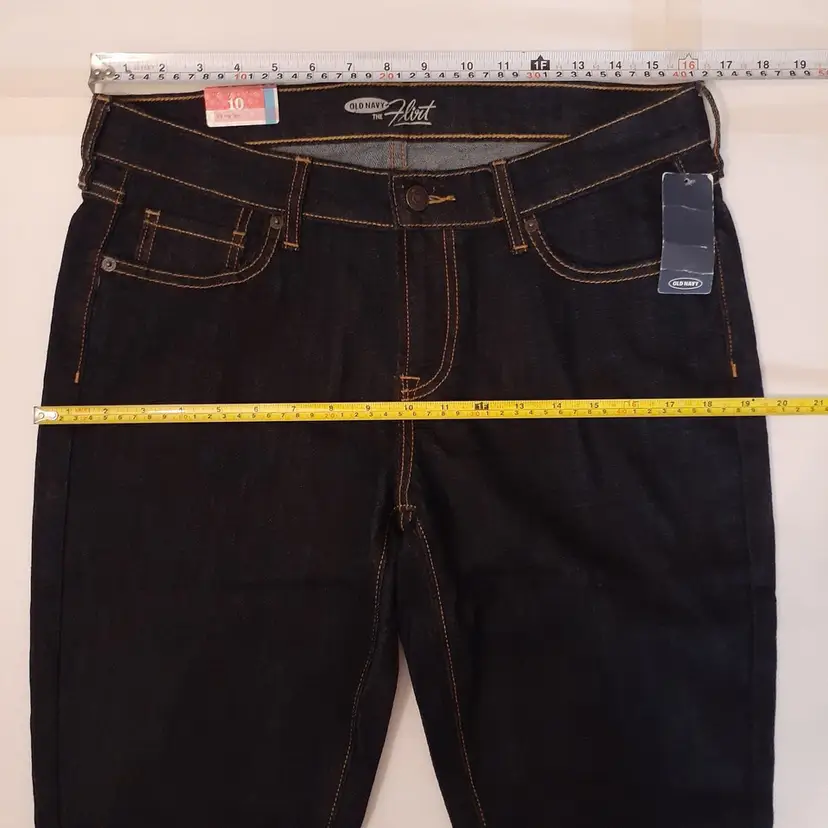Old Navy Flirt womens skinny jeans 10x32 long dark blue mid rise stretch denim new with tags NWT condition refer to photos for flat lay measurements