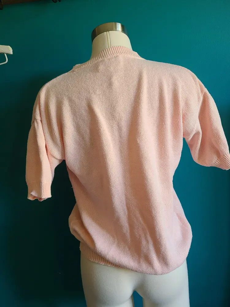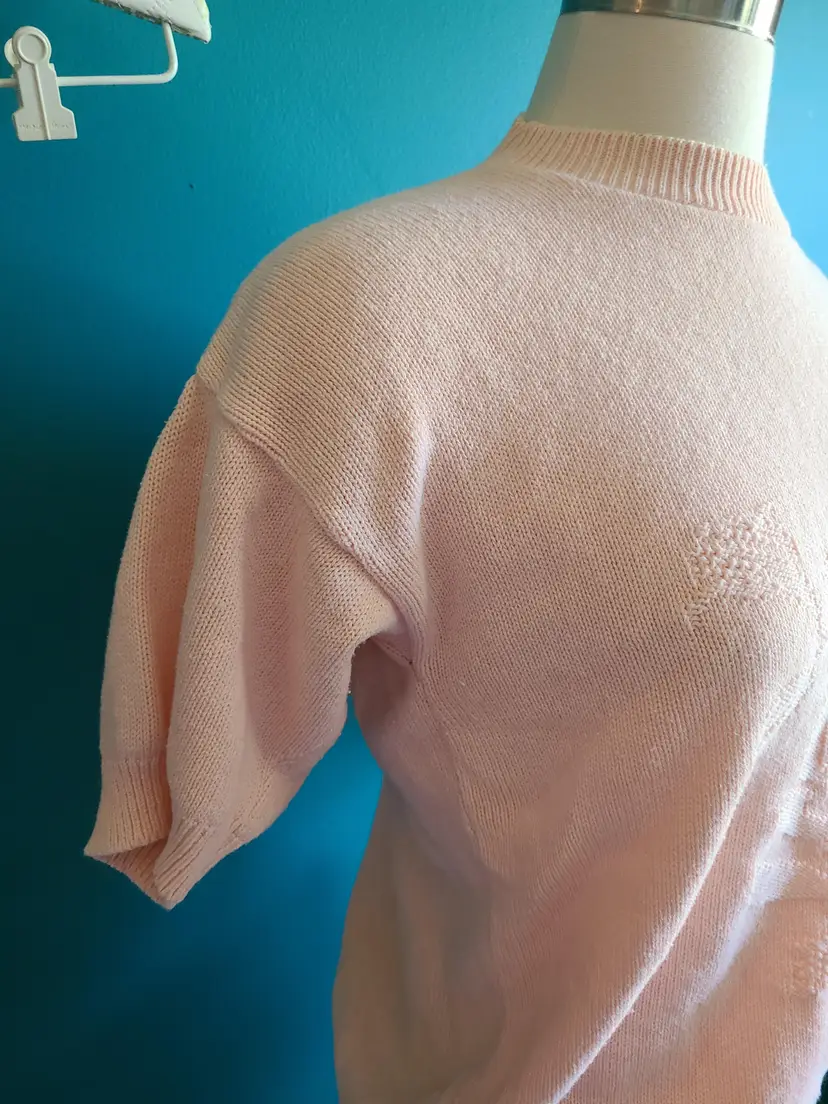 Vintage short sleeve pastel pink knit sweater