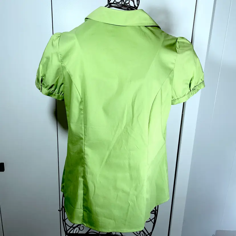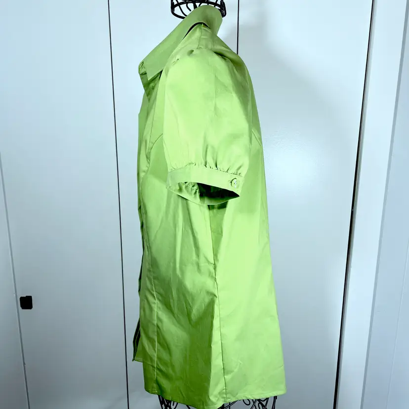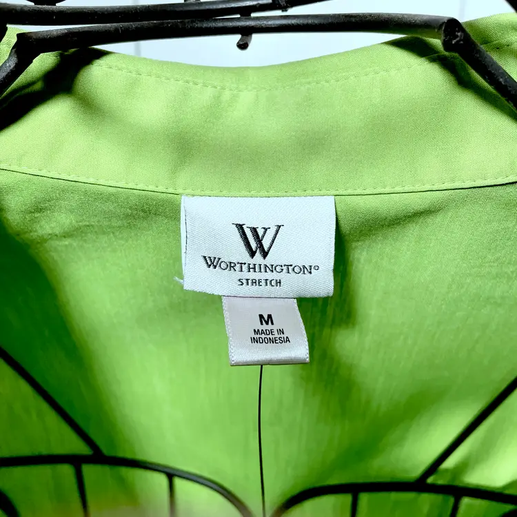 Women's Worthington Blouse Green Career Top NEW Condition: New with tags. Please see and zoom in on photos for more details. Color: Rosemary Green (not neon green) Features: Slight balloon cap sleeves, hidden button closure, collar, stretch. Machine washable 65% Cotton 30% Polyester 5% Spandex Size: Medium Measurements taken with item laid flat