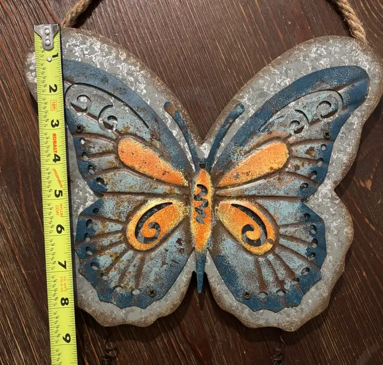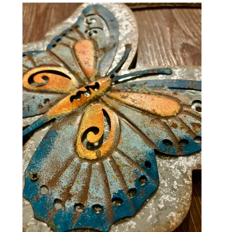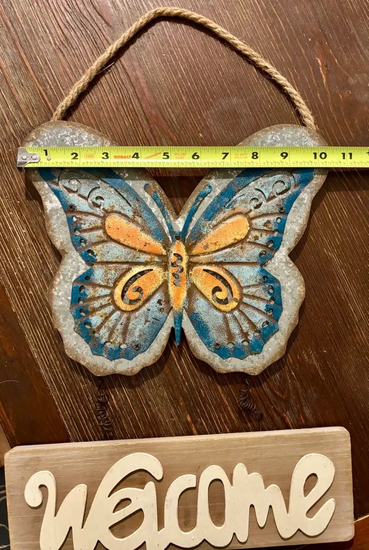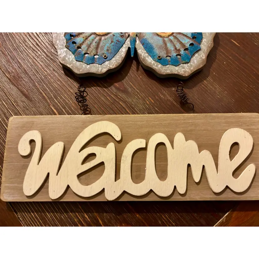 Butterfly Welcome Wood Metal Sign Rustic Wreath Door Wall Decoration Nature Inspired Indoor Outdoor