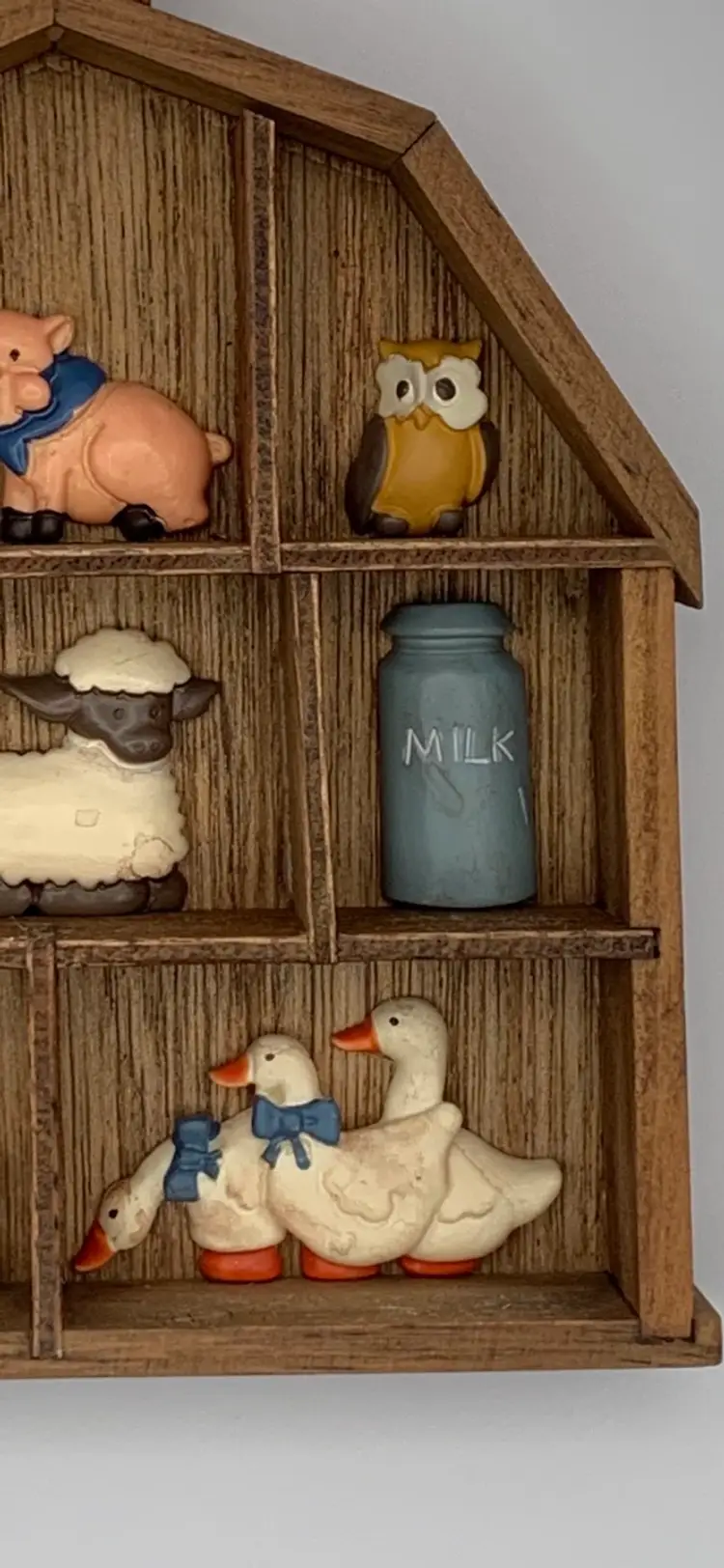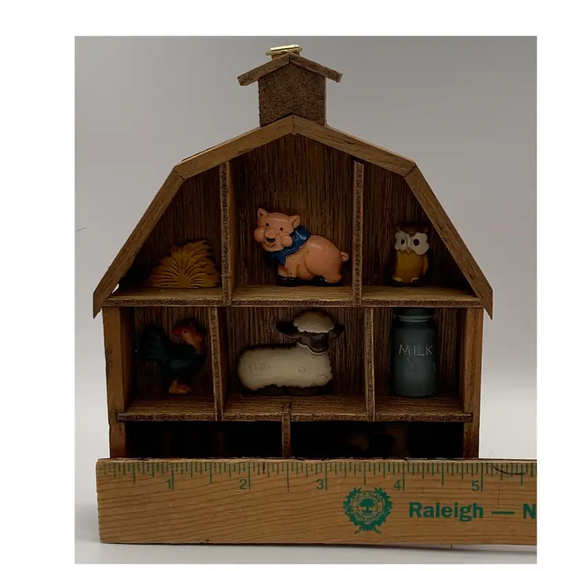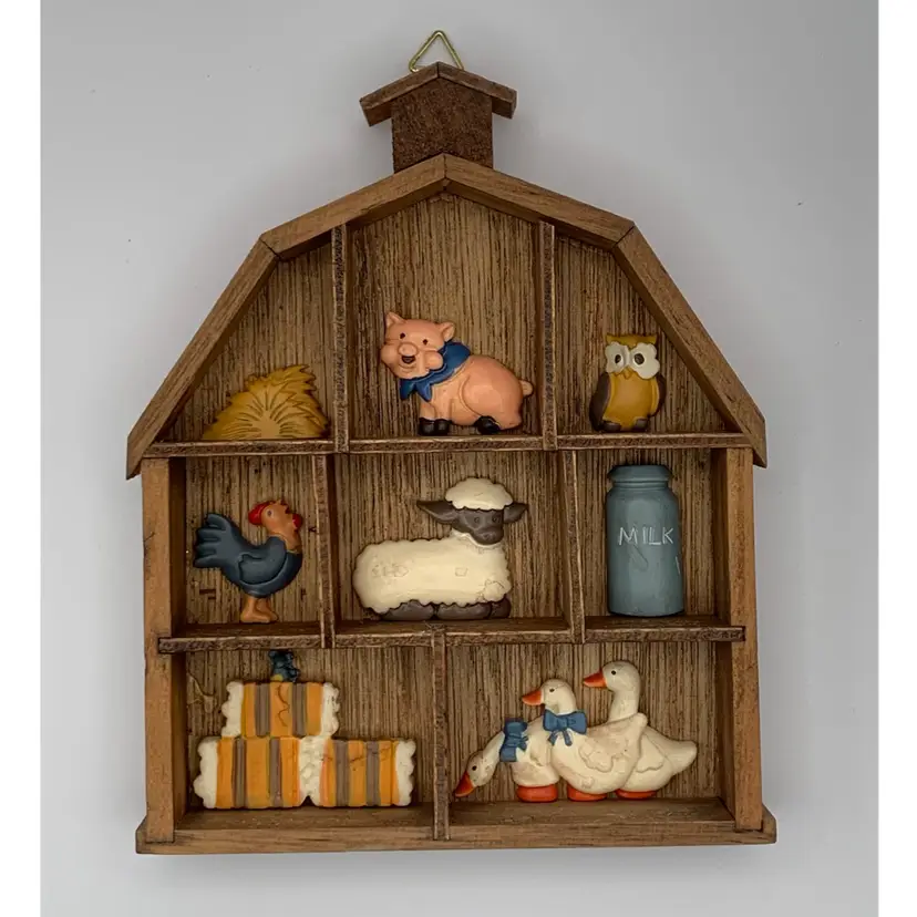 Add this adorable little farm themed wall hanging to your country decor. Wood barn with resin animals.(animals are not removable). Please see all photos for condition details and measurements. I am happy to answer any questions. Thanks for checking out my listings.