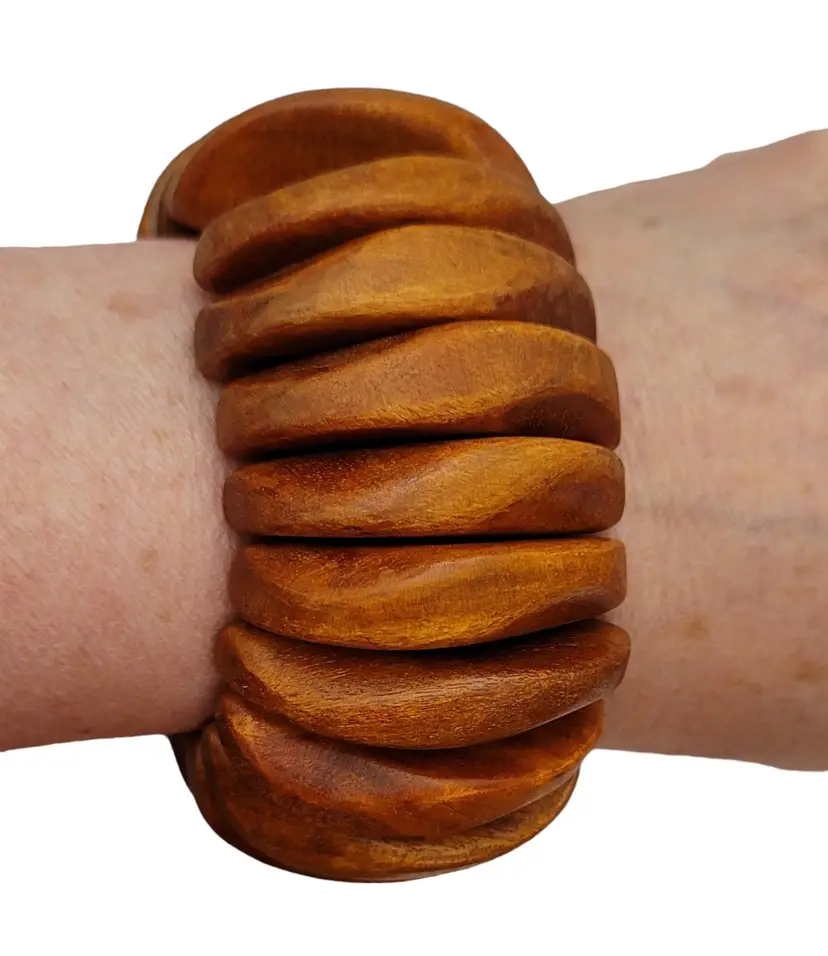 Wood Chunky Bead Stretch Wide Bracelet K131