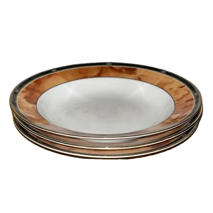 Design: The bowl features a stunning brown marble pattern, beautifully accented with a bold black border. This timeless design adds a touch of luxury and refinement to your dining collection.