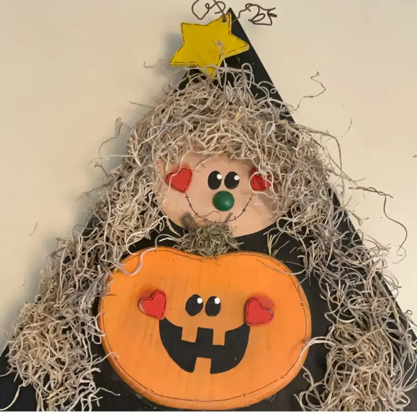 Wood very cute! Would look great hanging on a fodder shock, porch or if you decorate a Halloween tree for a topper!