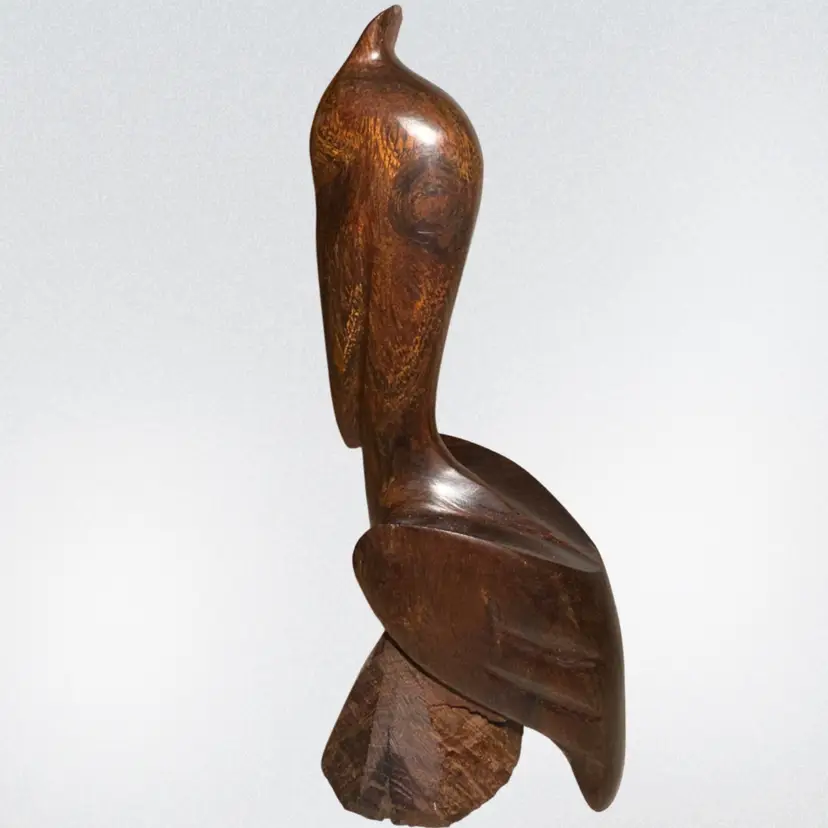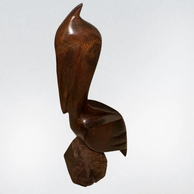 Wood Hand Carved 7” Pelican Sculpture No issues “The Human Touch” Florida is what sticker on bottom says