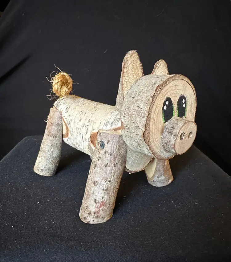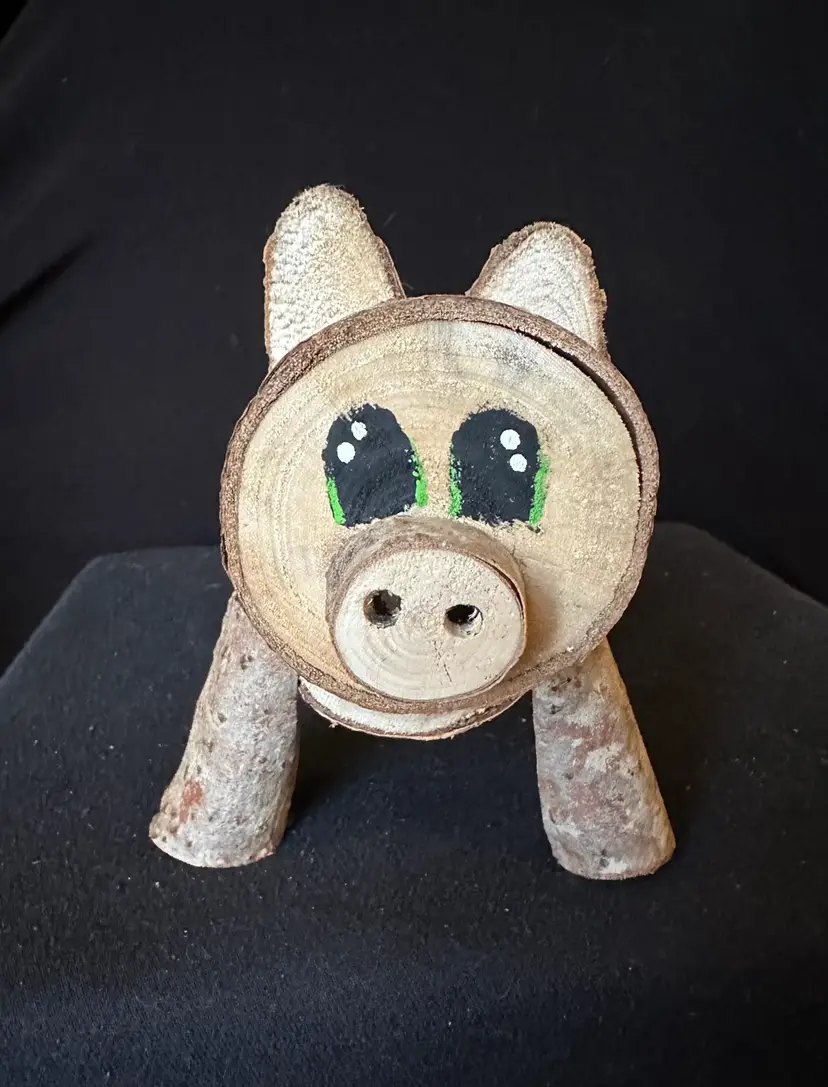 Super adorable wooden pig made from tree branch. No damage. 6.5L x 4.5W x 5.5H (to top of ear)
