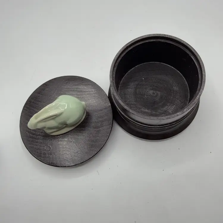 4” no issues. Marked made in Thailand. It is unclear if someone married these pieces. Slight smell of incense in jar