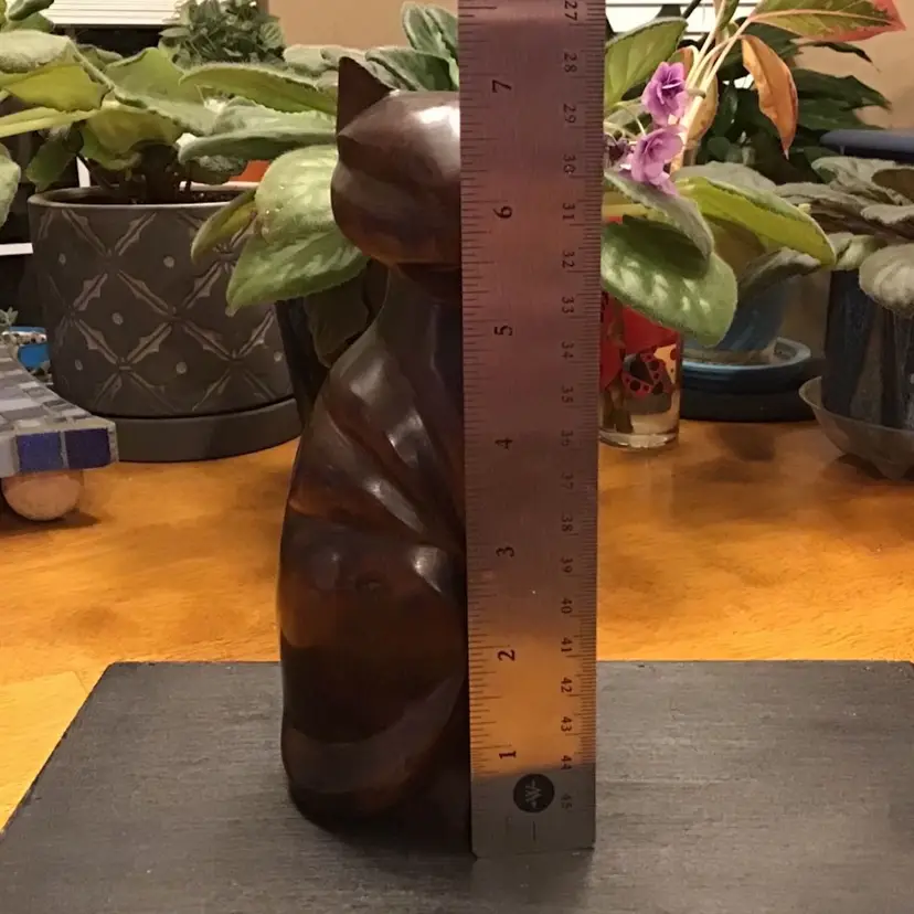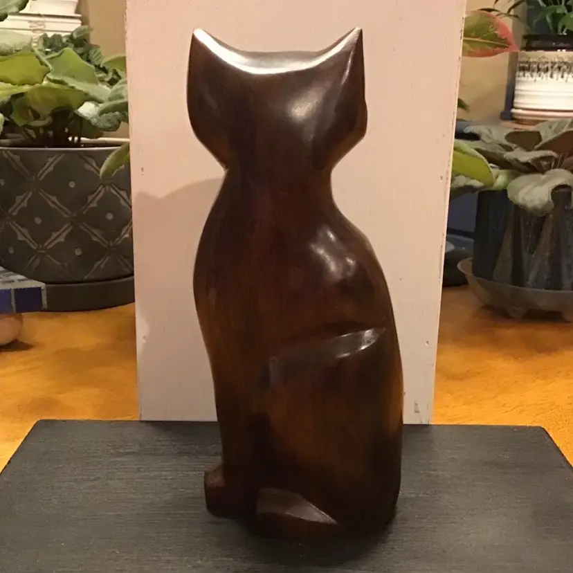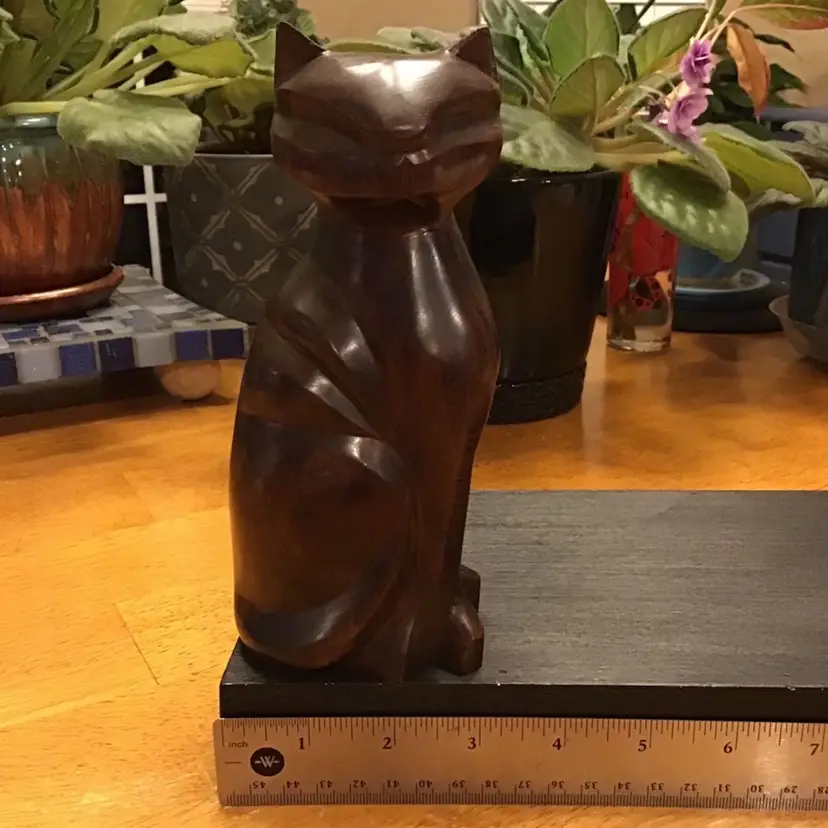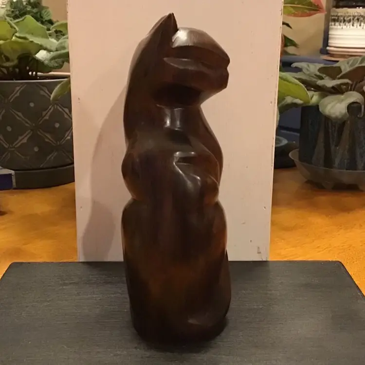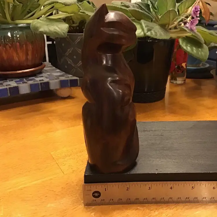 Beautiful hand carver cat is in excellent condition. No chips, cracks, or repairs. Not sure the maker but very well crafted. Size is in the pictures. See all pictures as they are an important part of the description.