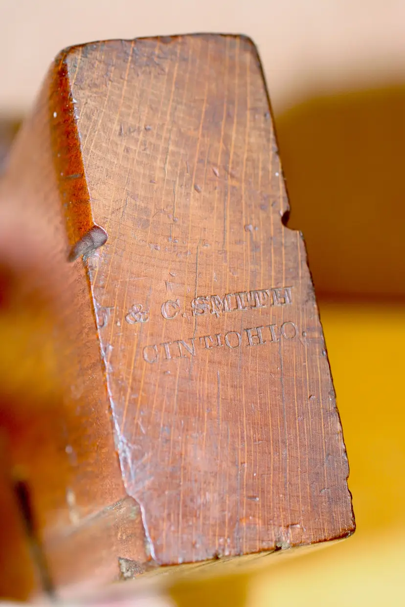 On offer here is a mid19th C wooden rabbet plane in very good condition. Please see photos of toe and heel for imprinted descriptors: J & C SMITH CIN TI OHIO 1 !/2 Further information: (from American Wooden Planes by Pollack): John H. and Charles J. Smith were wholesale hardware dealers in Cincinnati, OH from 1851-52. And were succeeded by C. J. Smith & Co. (w.s.) from 1853-58. ***(The authors code for ‘very rare’ marks.) Iron is imprinted with DWIGHTS FRENCH & CO (if you Google this company you’ll find references to it also being in operation in the mid-1800s.) Please see photos. Offered to USA Buyers only. Shipping to be by USPS Ground Advantage. Buyer pays shipping. Multiple items purchased on the same day will be combined for savings on shipping whenever possible. Any overage collected for shipping will then be refunded.