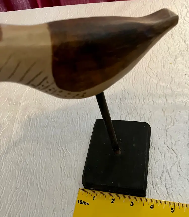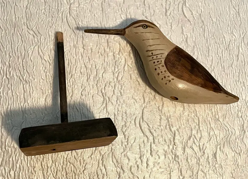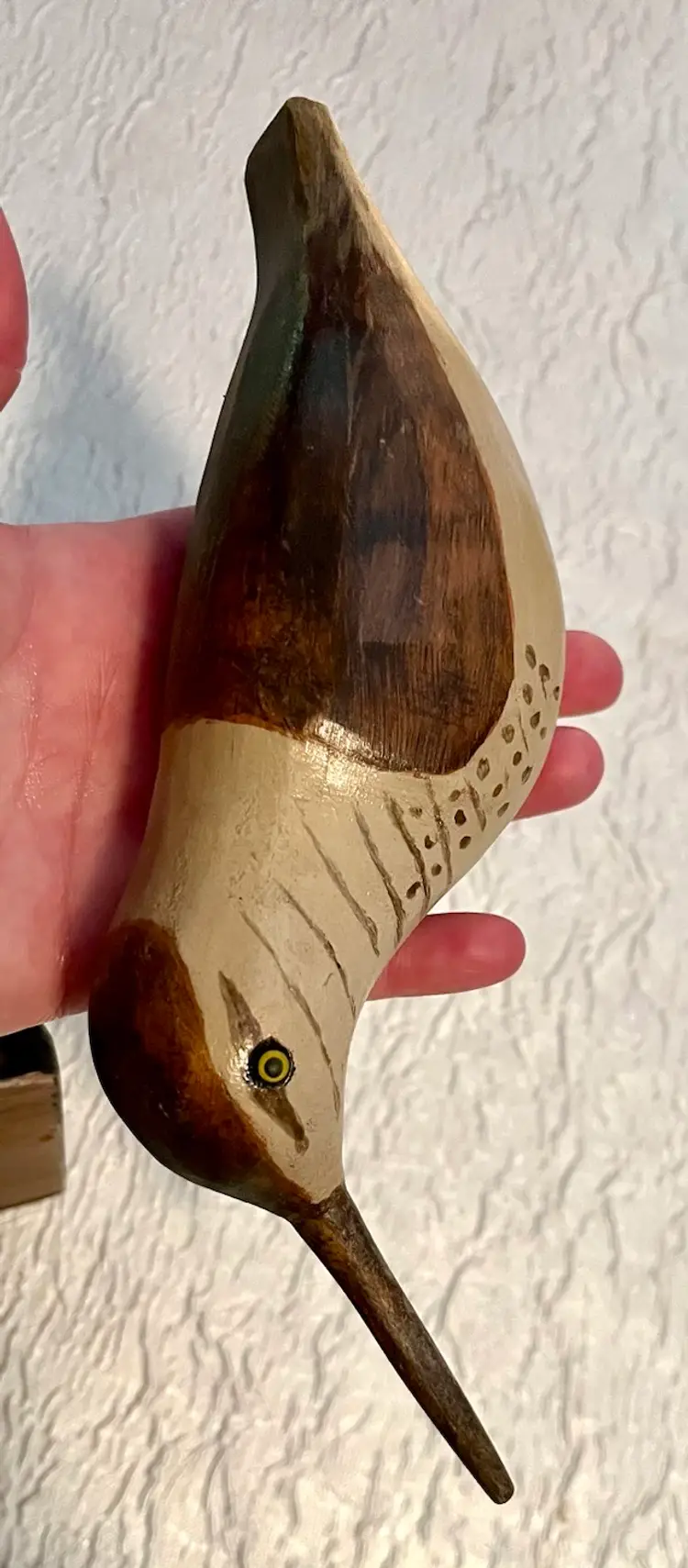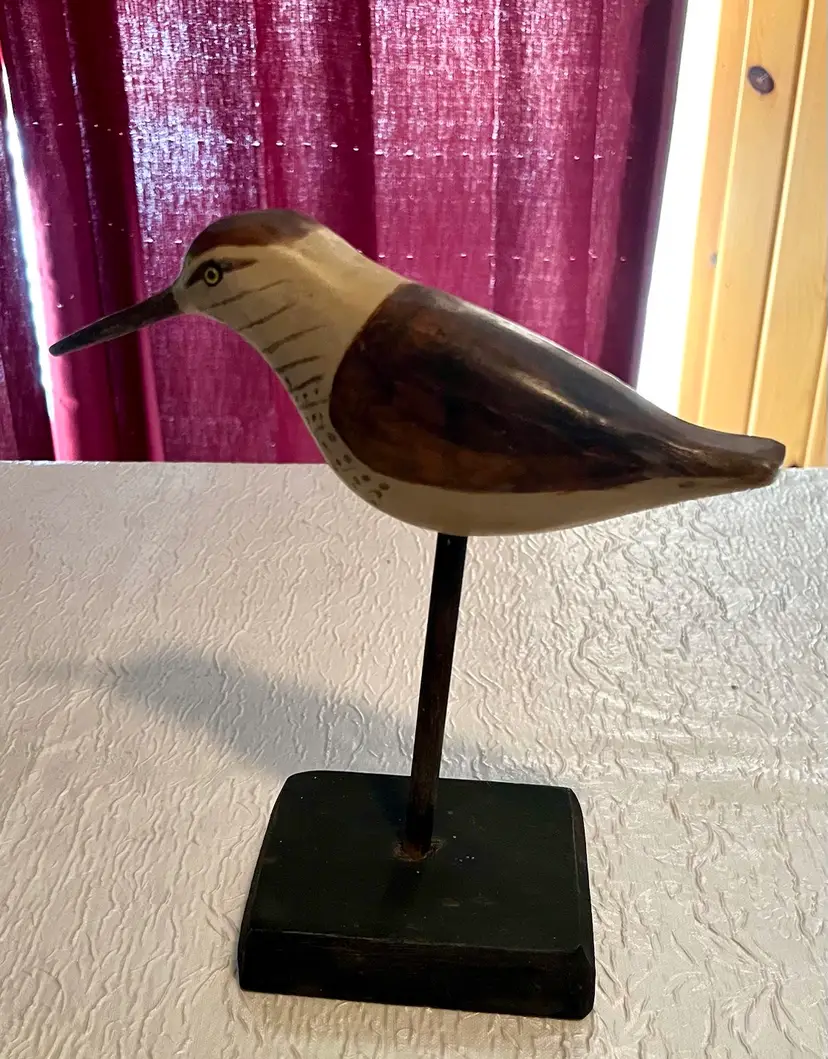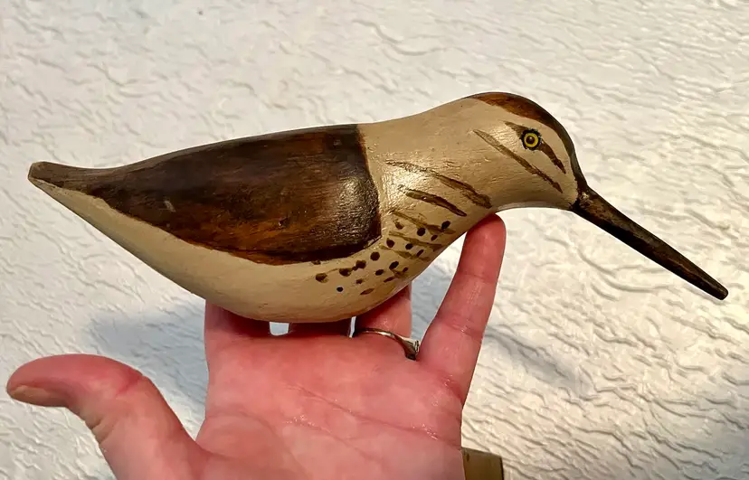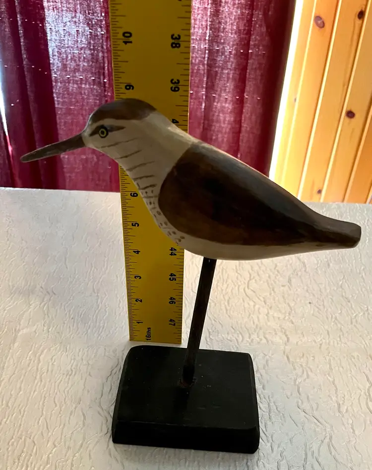 Wooden Carved Sandpiper Shorebird Freestanding Rustic Painted Beaded Eyes