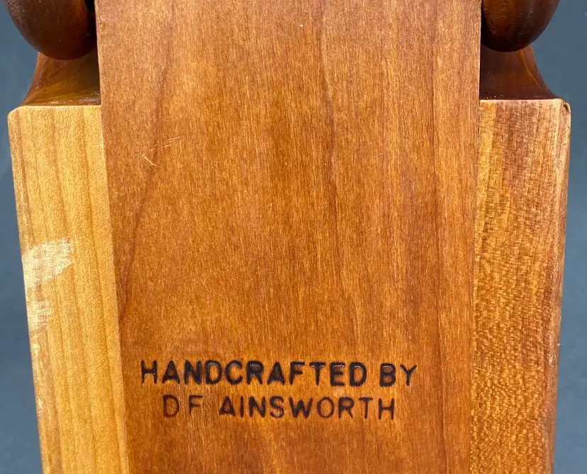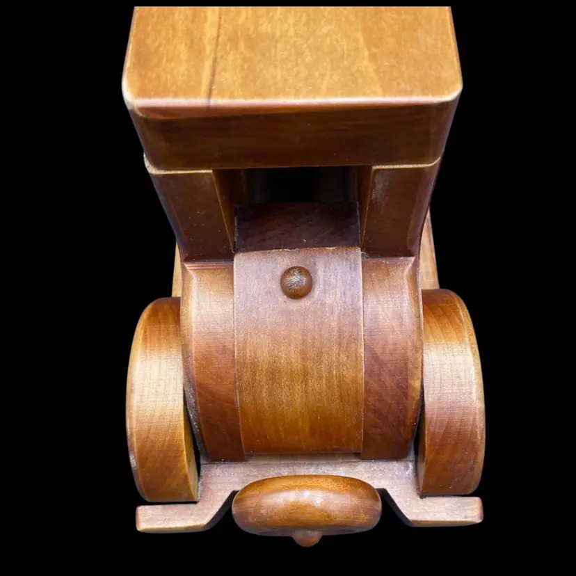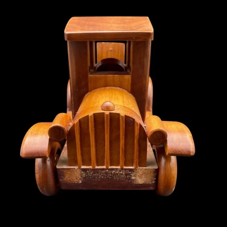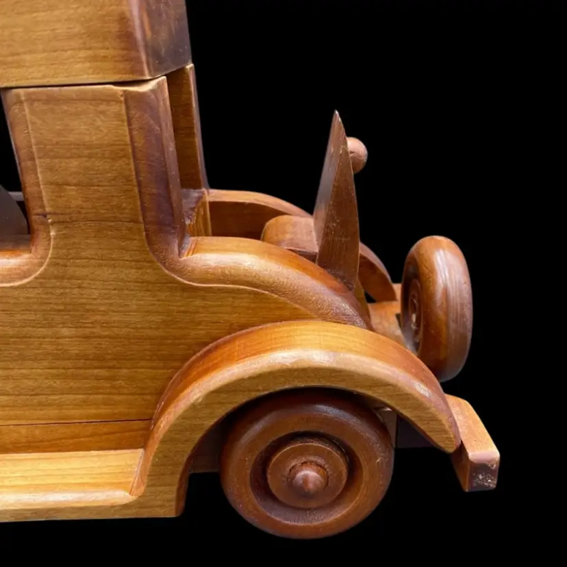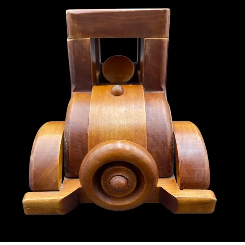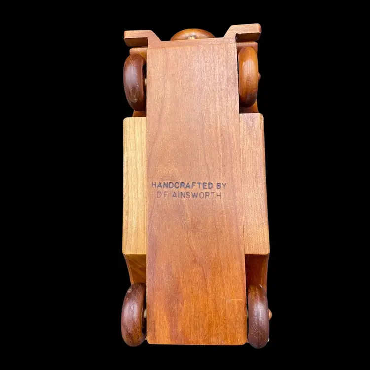 This is a beautifully handcrafted wooden Ford 'Model A' Rumble Seat Coupe with a working jump seat and wheels that turn, made by DF Ainsworth. This is a wonderThis vintage collectible is perfect for car enthusiasts and collectors alike. Don't miss out on the opportunity to own this unique and rare item.