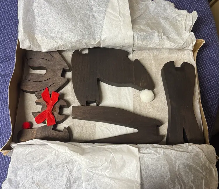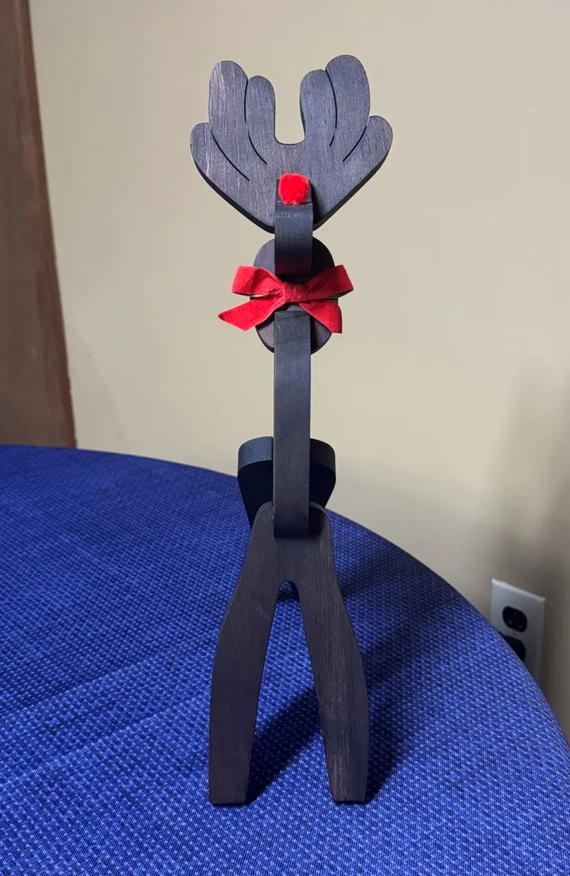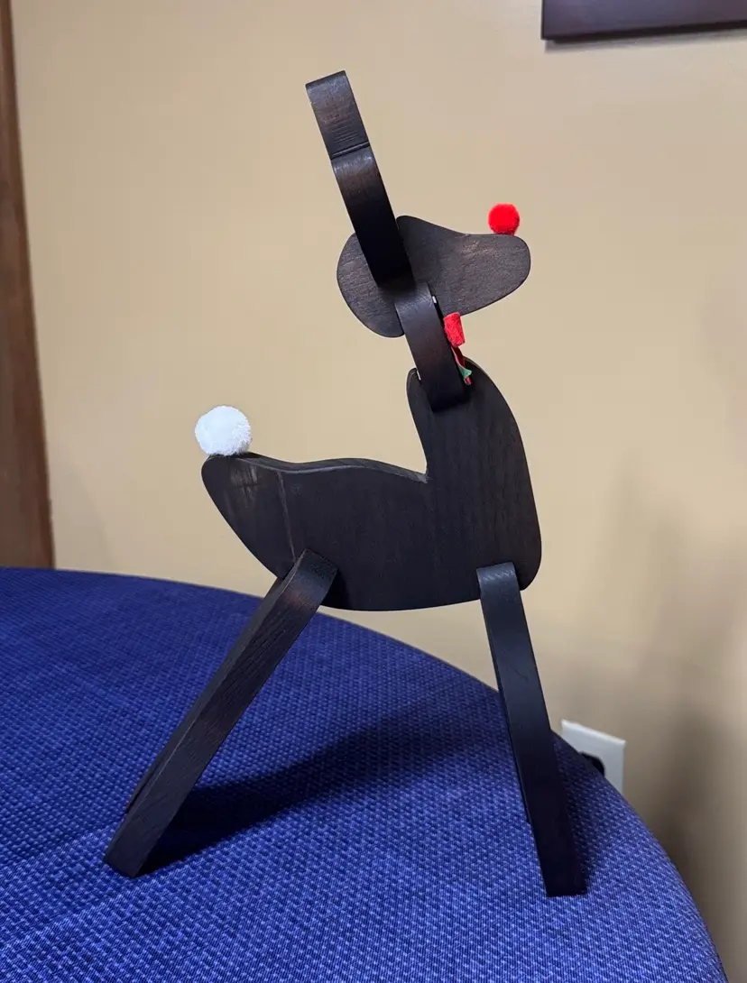 Vintage Wooden Handmade Reindeer Rudolph Christmas Figurine Decor 16” Ribbon. Add a touch of holiday charm with this dark brown wooden reindeer. Perfect for enhancing your festive home decor. Excellent like new condition (13161119251)