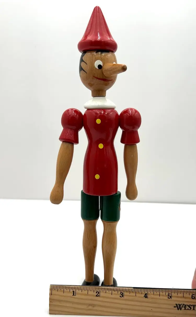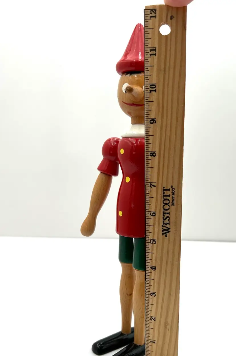 As shown 11.5 inches tall and 3.5 inches wide Very little paint wear and no chips or cracks to the wood