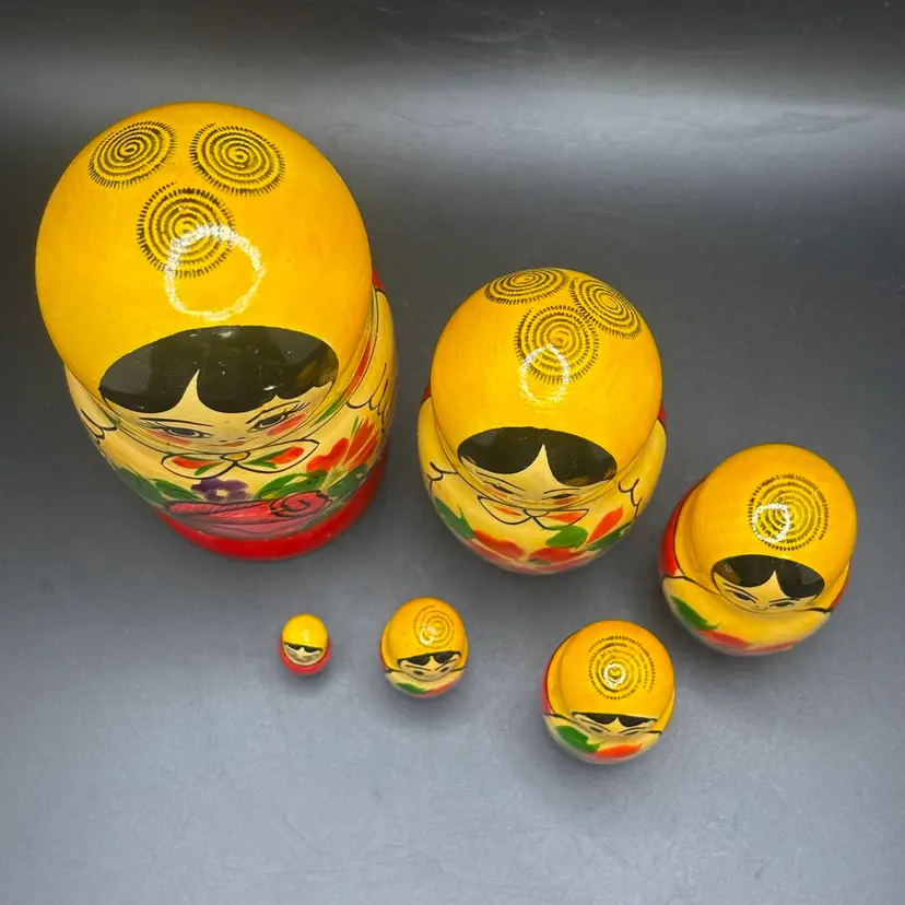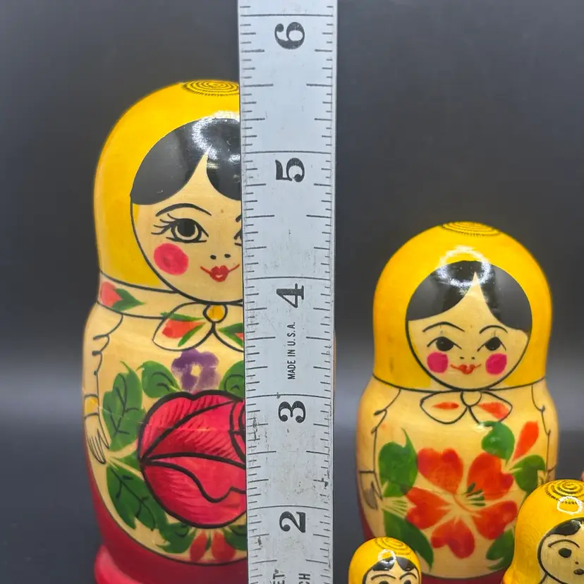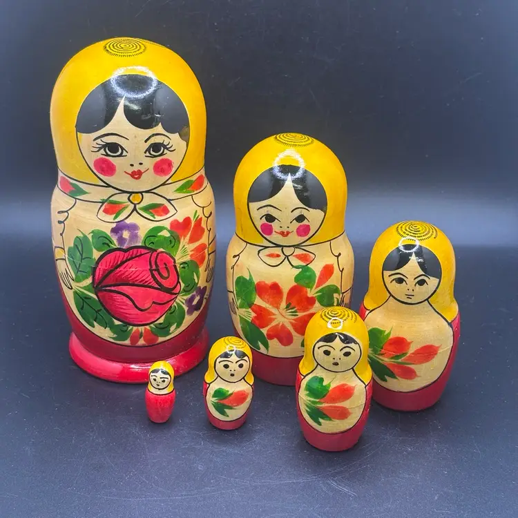 Wooden Nesting Dolls Set Of 6 Floral Painted 5.5ā€