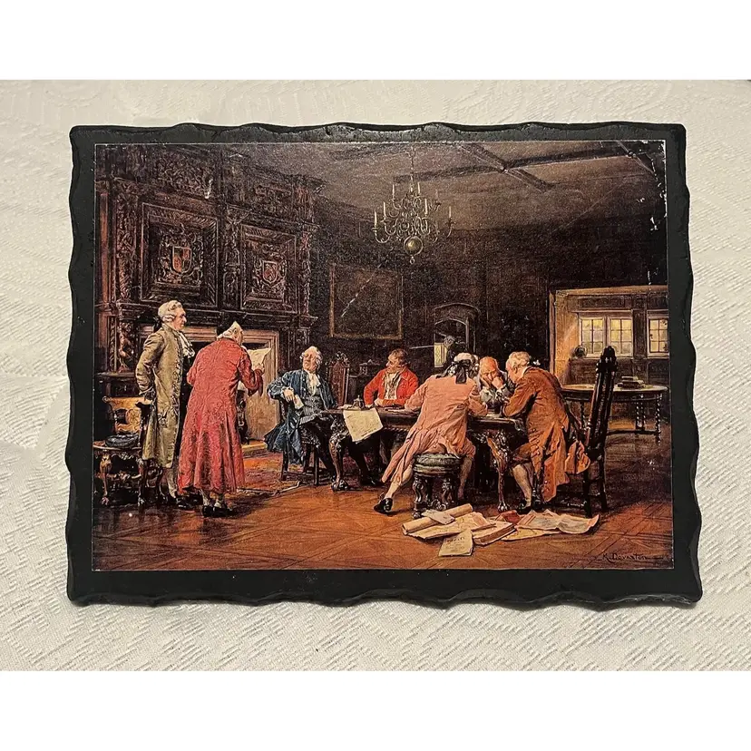 This is a vintage print of Margaret Dovaston's "Searching the Deed" on slate mounting.