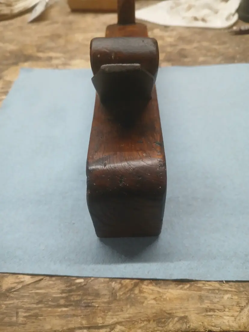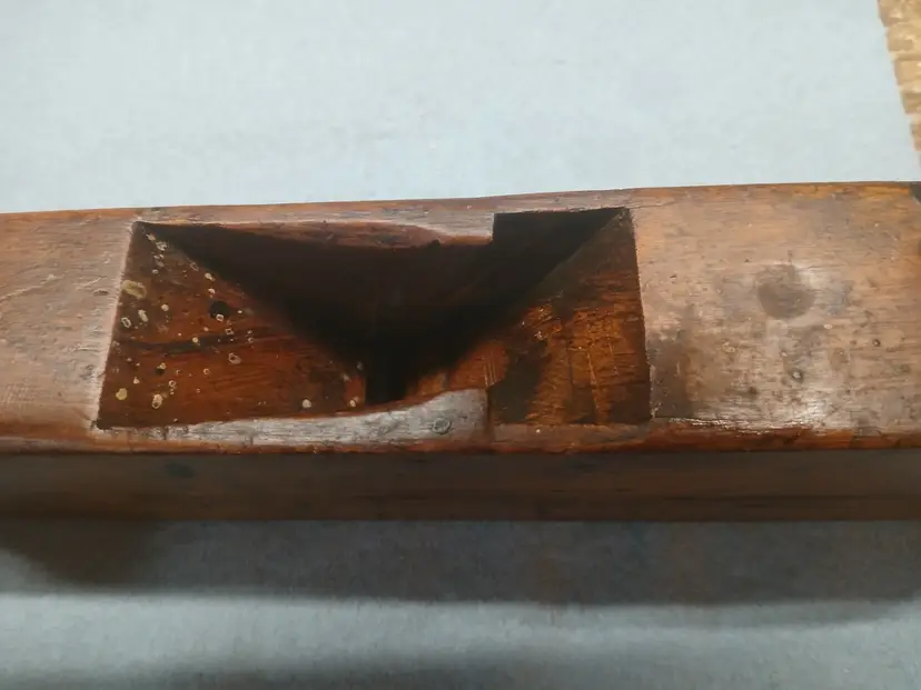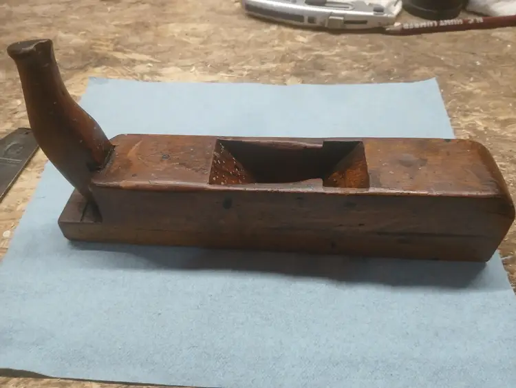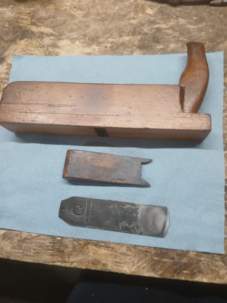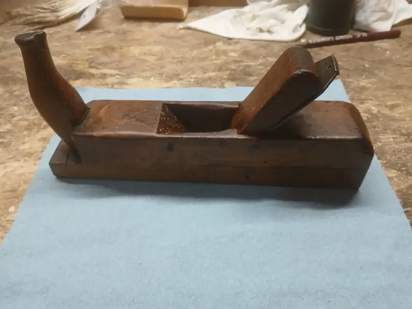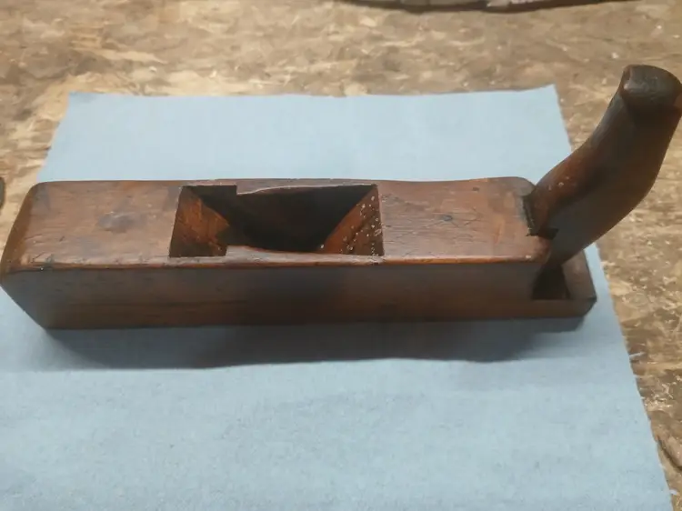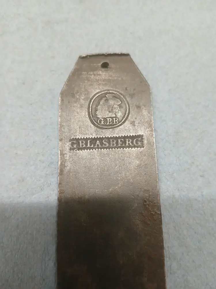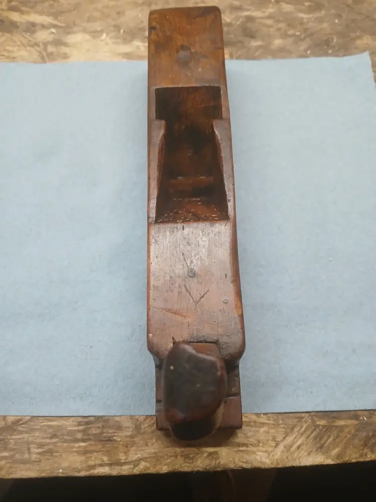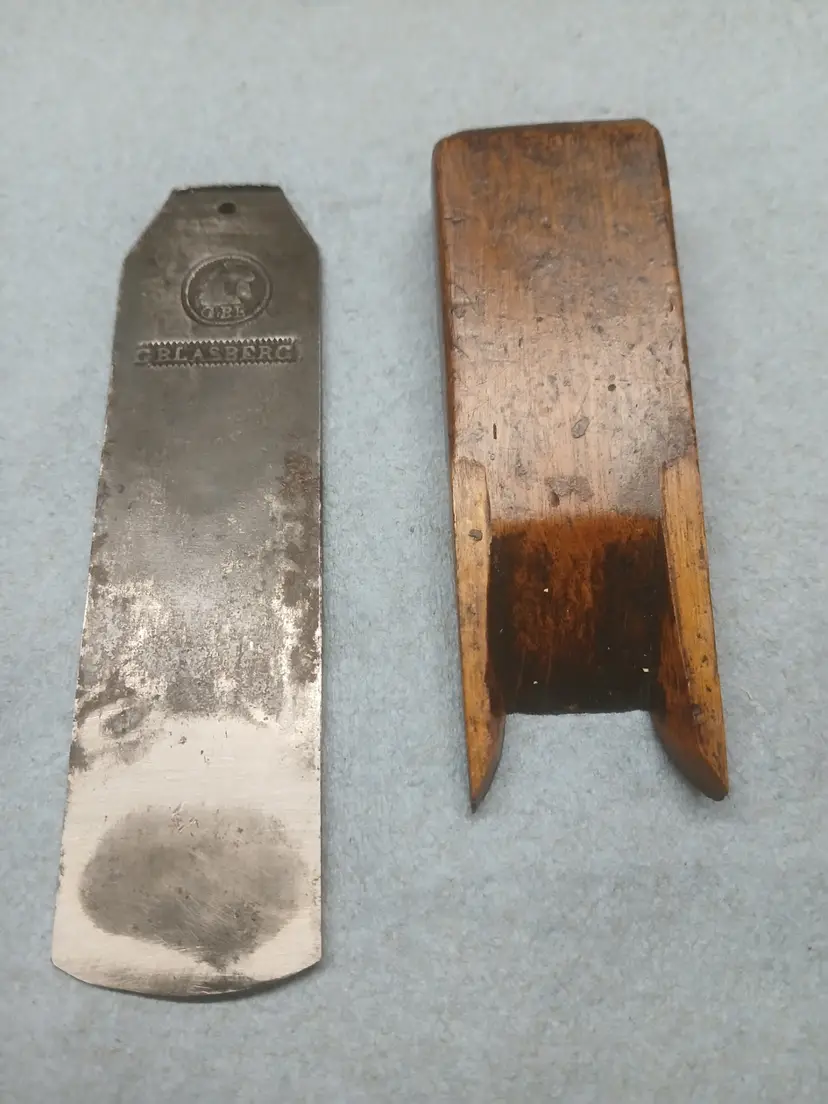 A wooden scrub plane. The iron is G. Blasberg. No other maker marks on this scrub plane.