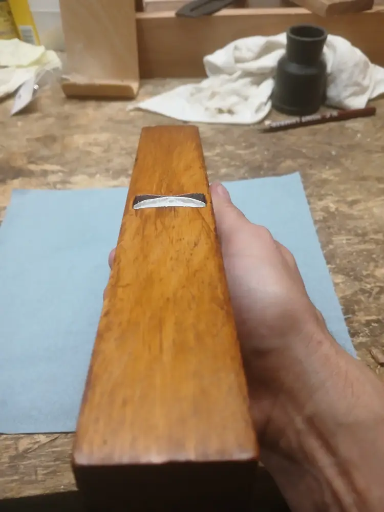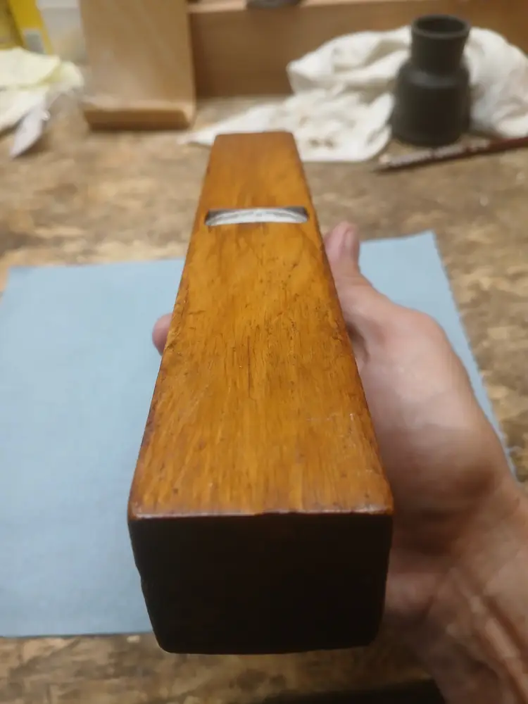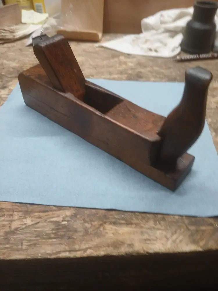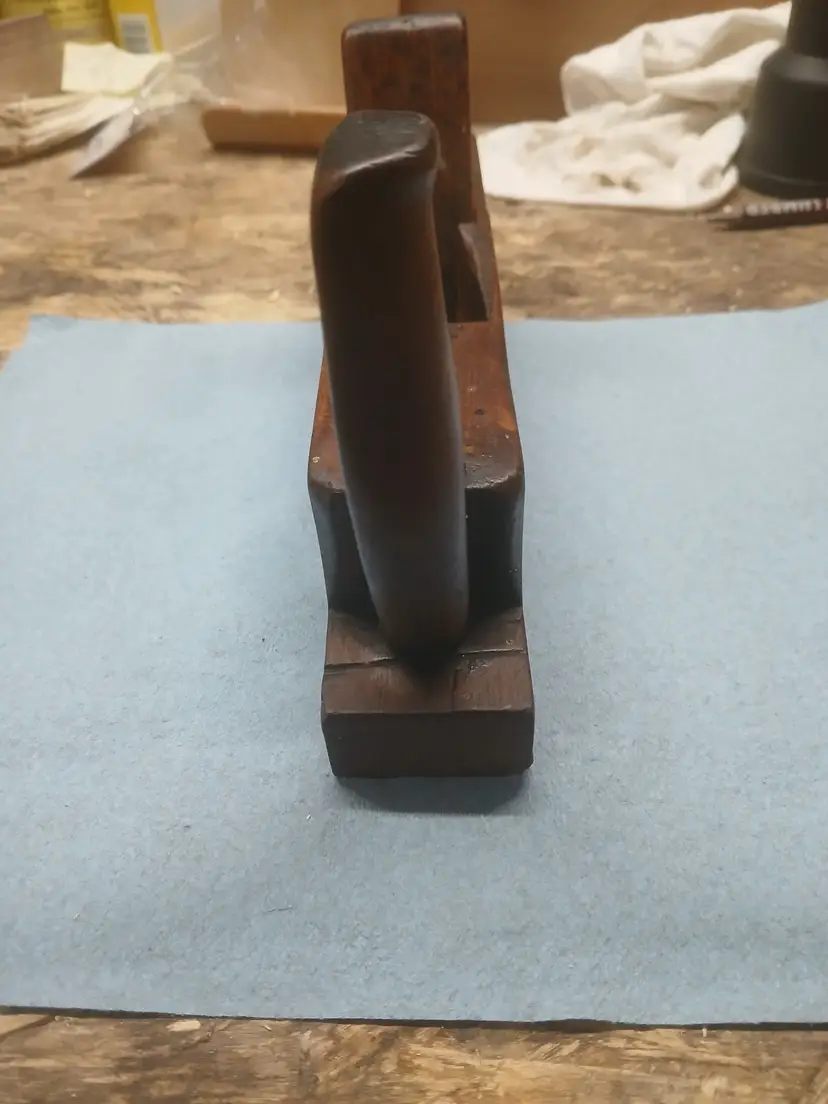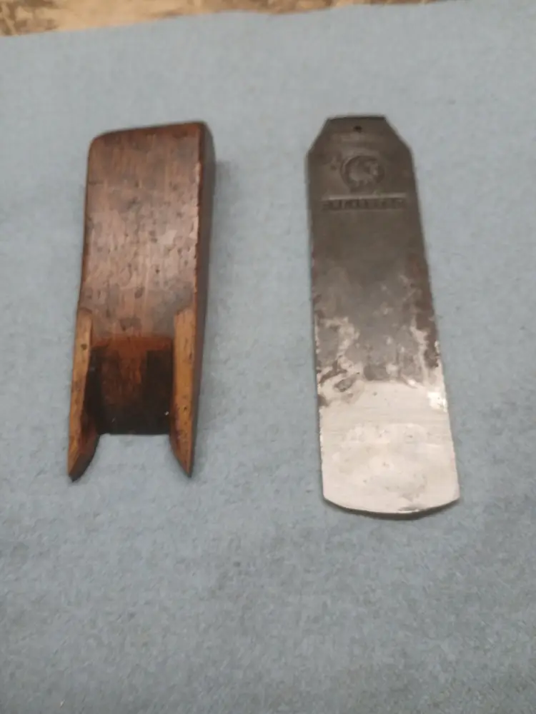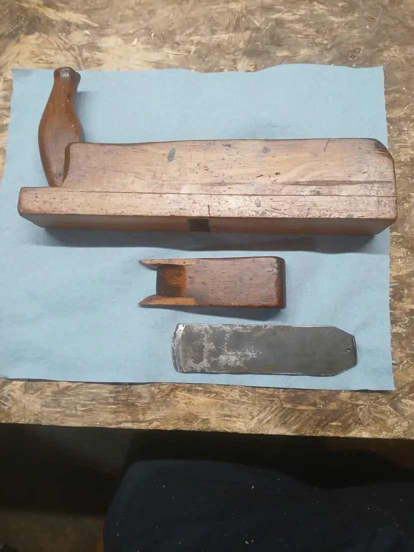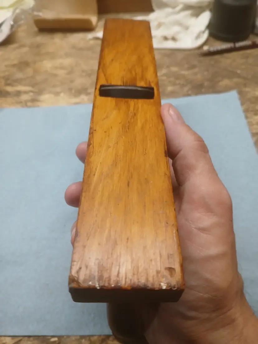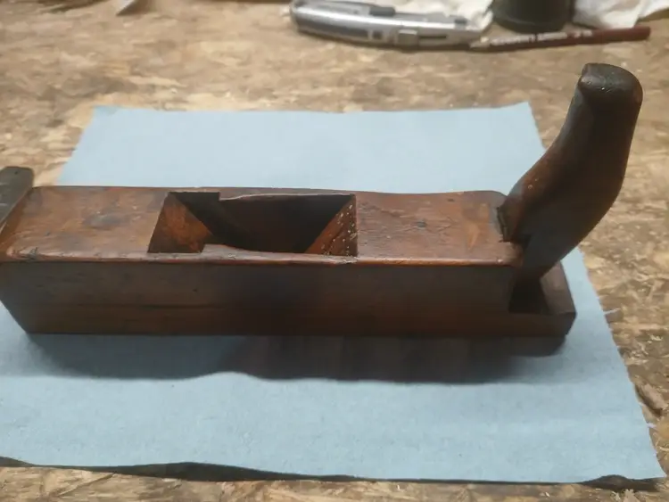 A wooden scrub plane. The iron is G. Blasberg. No other maker marks on this scrub plane.