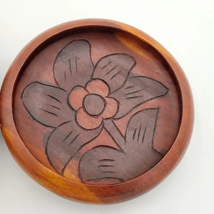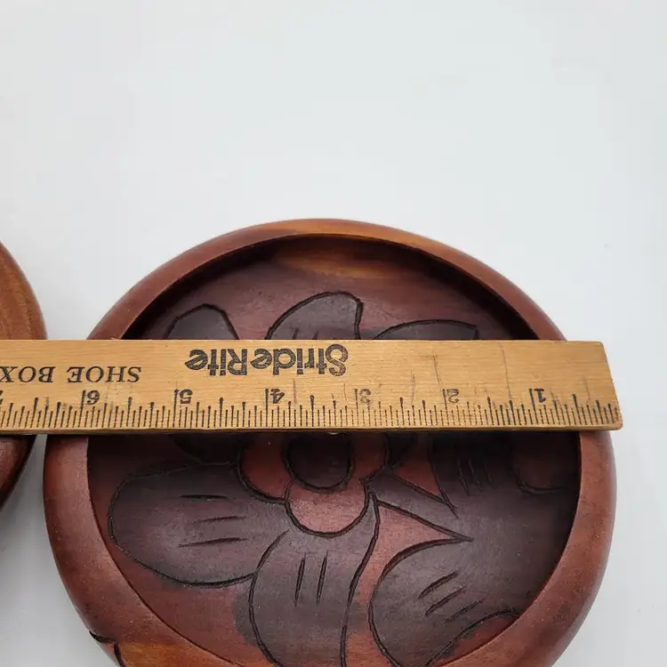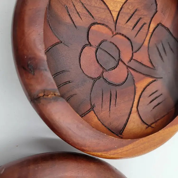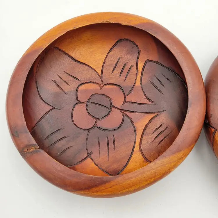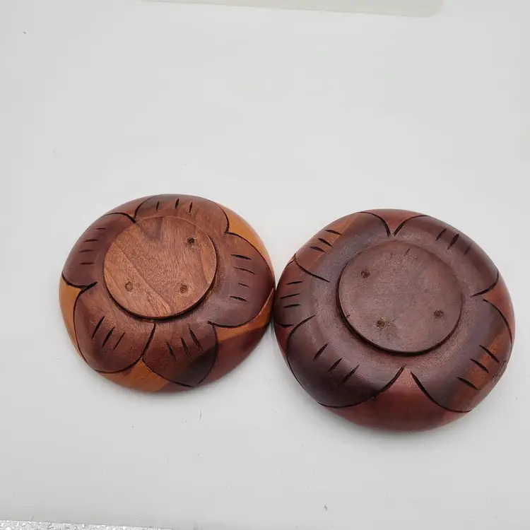 Wooden Teak Bowls Set of 2 Approximately 6" across Hand Carved
