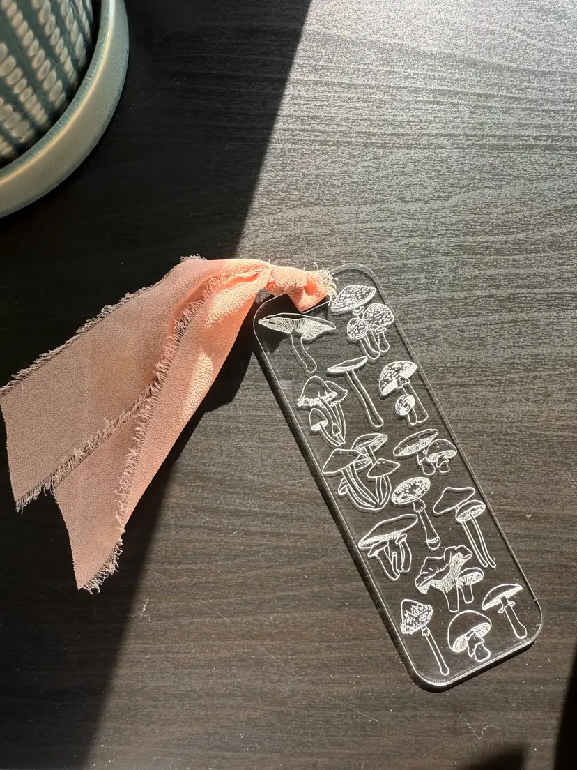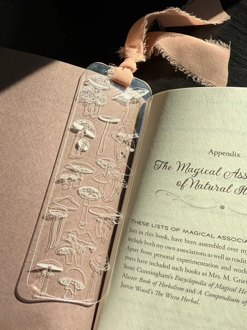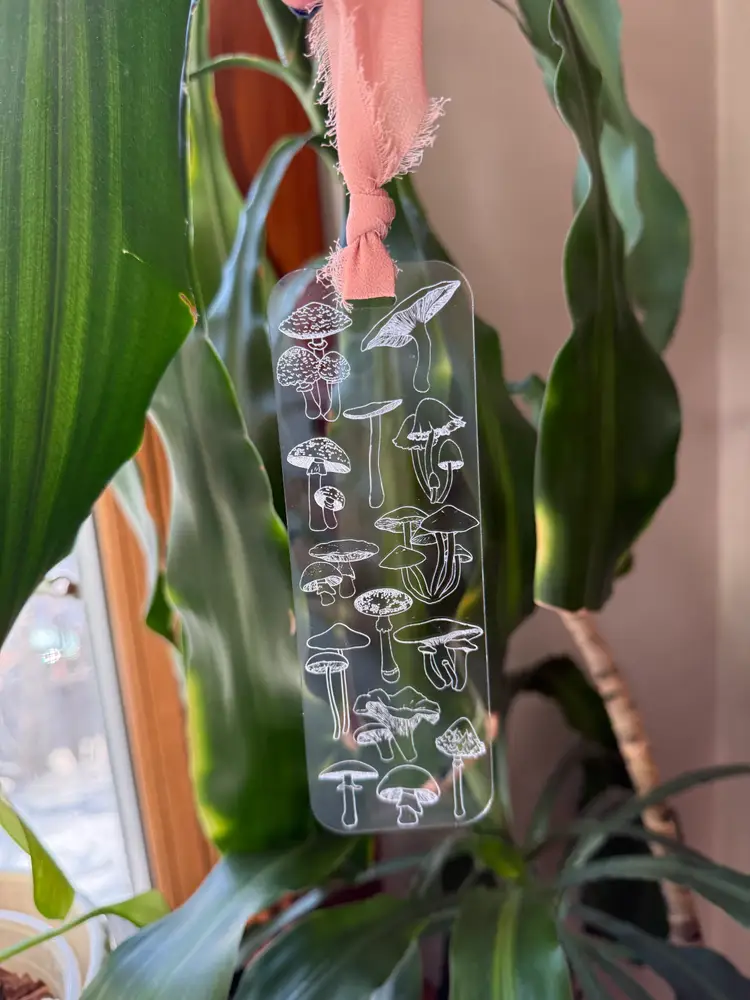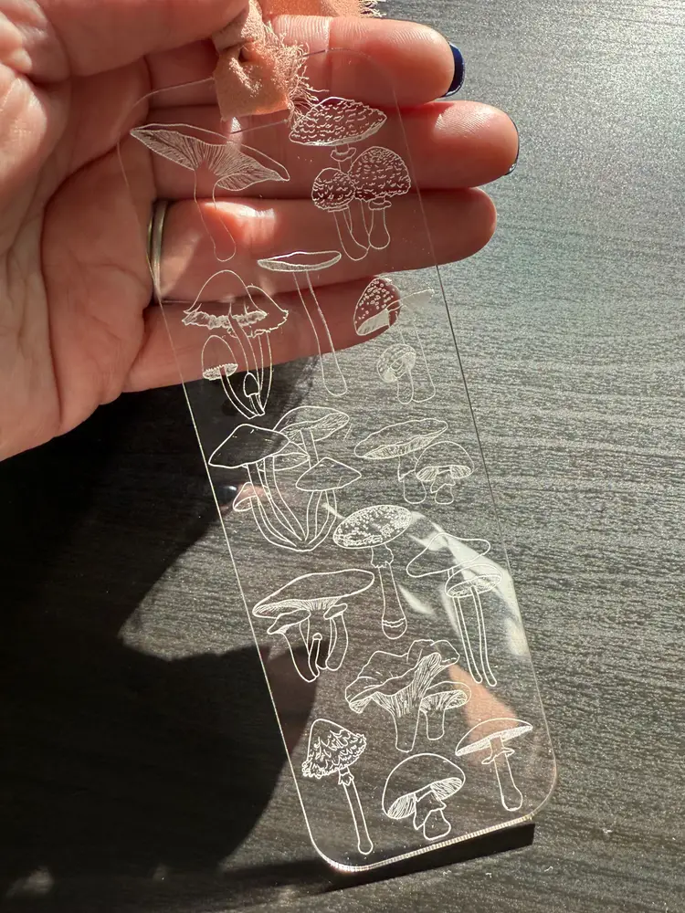 Bookmarks are the perfect gift for book lovers! Add a whimsical touch to your reading with this gorgeous woodland mushroom clear acrylic bookmark.
