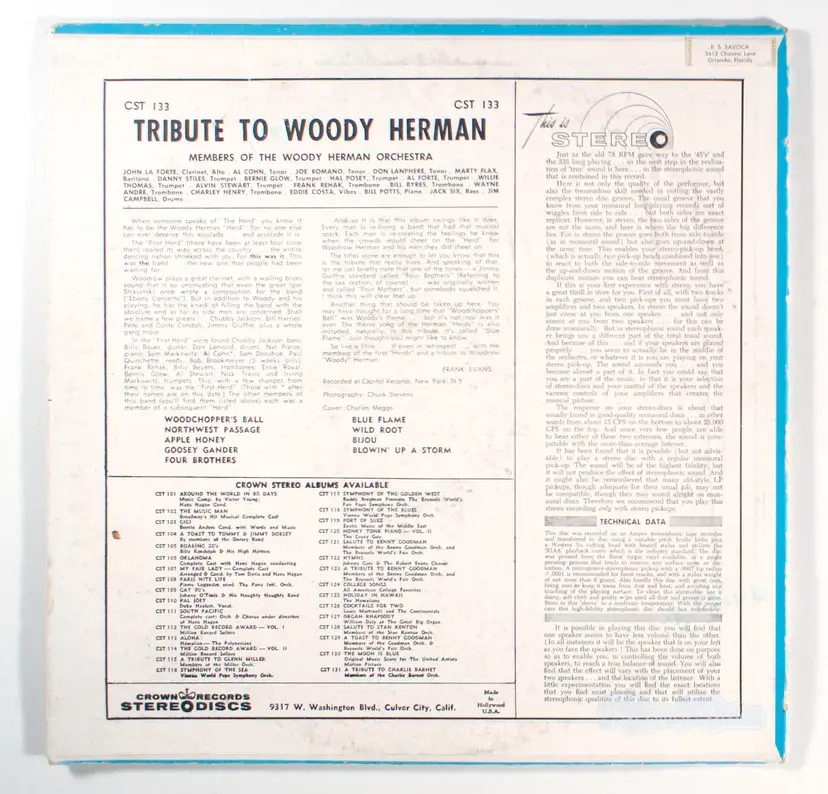 Tribute To Woody Herman, by Woody Herman, is a 2006 compilation album released under the name stage, gathering classic big band jazz recordings primarily from the 1940s era of his legendary Herds. This retrospective collection highlights the explosive energy of Herman’s ensembles with tracks such as Northwest Passage, Goosey Gander, Blowin’ Up A Storm, and Wild Root, showcasing the band’s signature driving rhythms and blazing brass sections. Historically significant, the album draws heavily from the Thundering Herds period (1945–1947), when Herman’s orchestra helped bridge swing and emerging bebop styles while nurturing future jazz stars. As a tribute released nearly two decades after Herman’s death in 1987, it underscores his enduring influence as a bandleader who kept big band music alive for over fifty years. Although the compilation itself produced no new hit singles, it prominently features Herman’s biggest career hit, Woodchopper’s Ball (1939), which sold over five million copies and remains his most iconic recording.