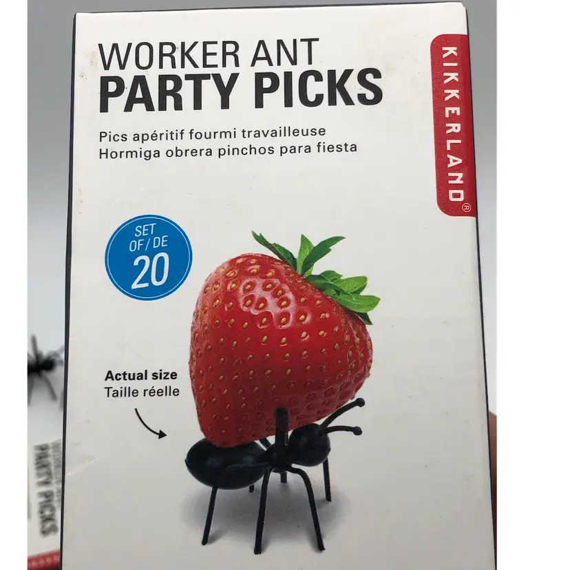 Skewer your fruit or cheese cubes on these little cuties! Kikkerland Worker Ant 🐜Plastic Party Pics CONTEMPORARY NIB set of 20. Ants are perfect inside. So much SUMMER FUN for your PICNIC LUNCH or Charcuterie Board. Hand washable, plastic and reusable. One box is damaged, as pictured.