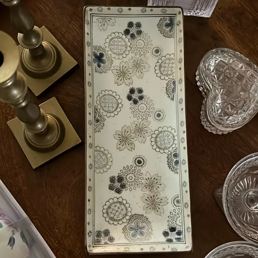 Subtle blues and creams on this pretty tray for display or- sushi. 😊 Great condition