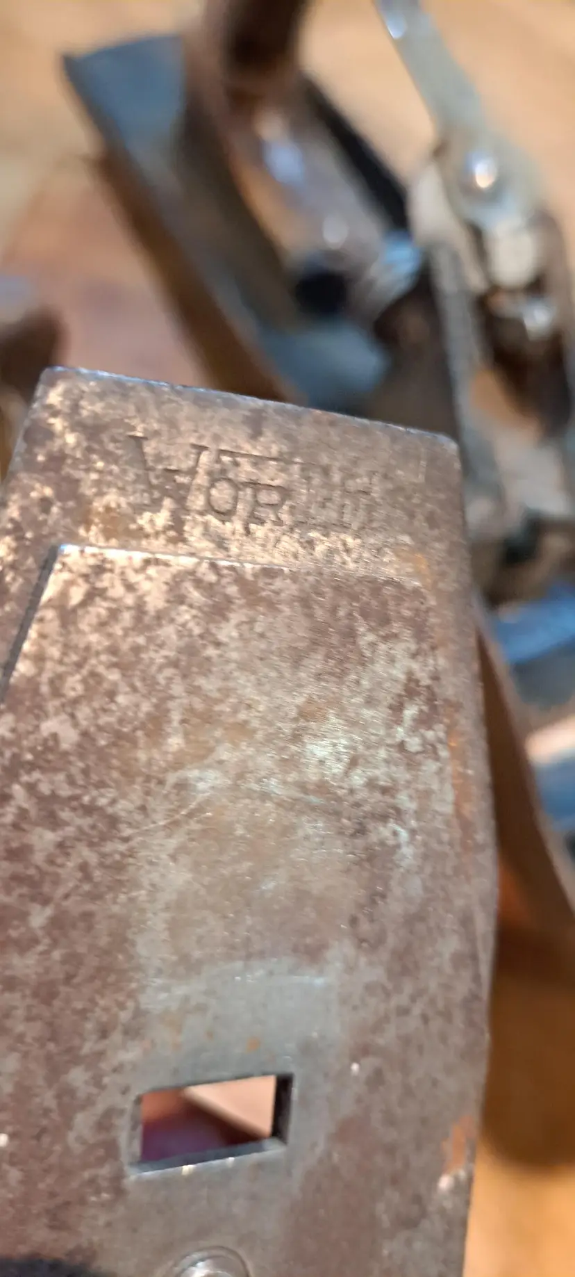 Worth #5 sized Jack Plane. Not much info on Worth branded planes, this is the only one I have seen that has the fixed frog. Tote is broken also. I am not a fan of the fixed frogs, however I have gotten the Stanley Defiance planes to take good shavings in the past.