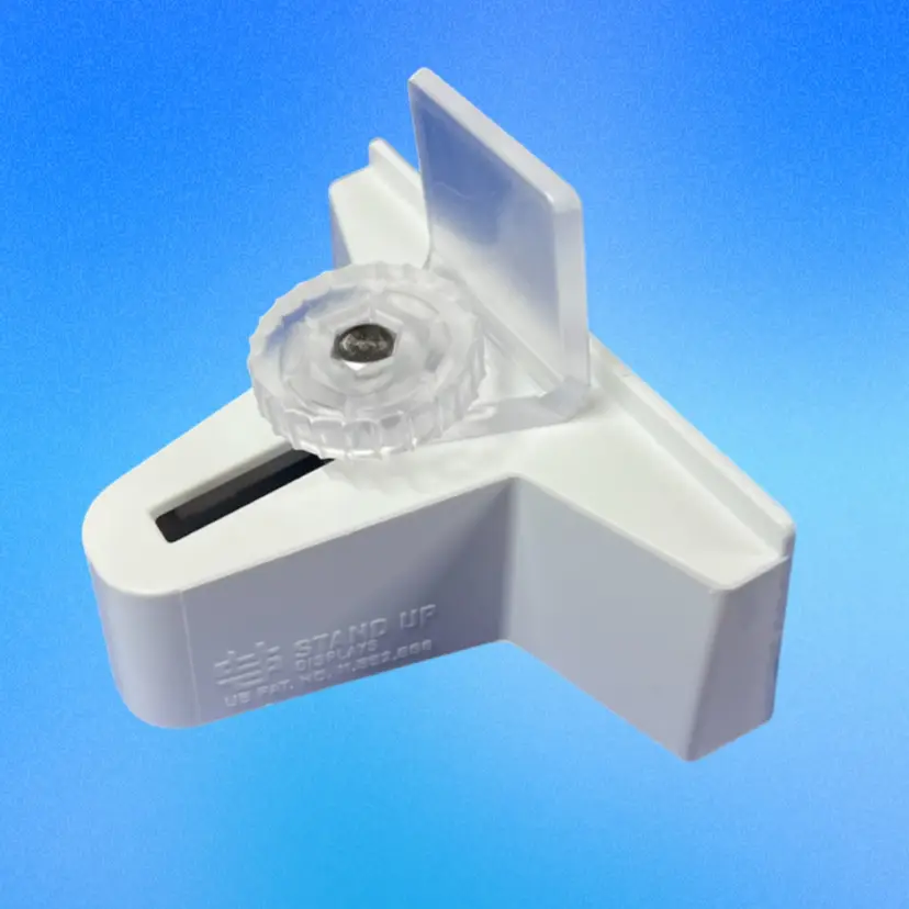 The VariStand is simple, all you do is loosen the thumb screw on the back support and adjust to your desired setting. Tighten the thumb screw and you're ready to display!