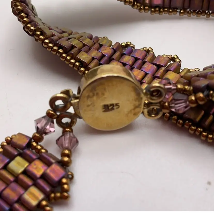 Clasp marked 925, untested. From an artist's Estate in Southern California. In addition to beadwork, she was a professional porcelain painter.