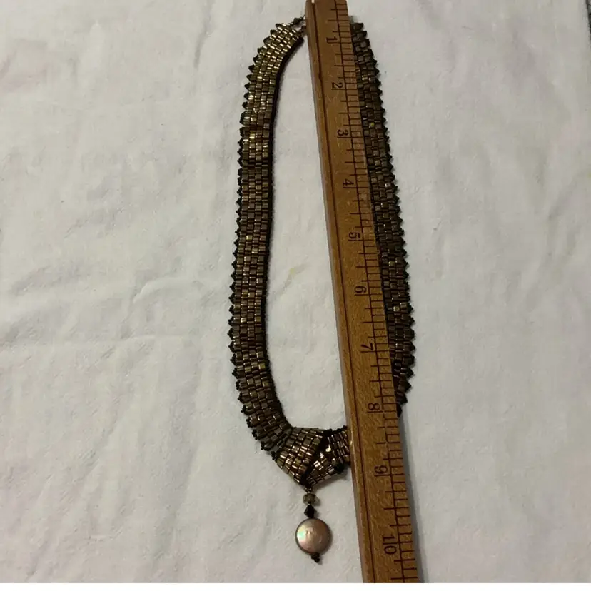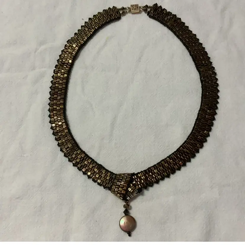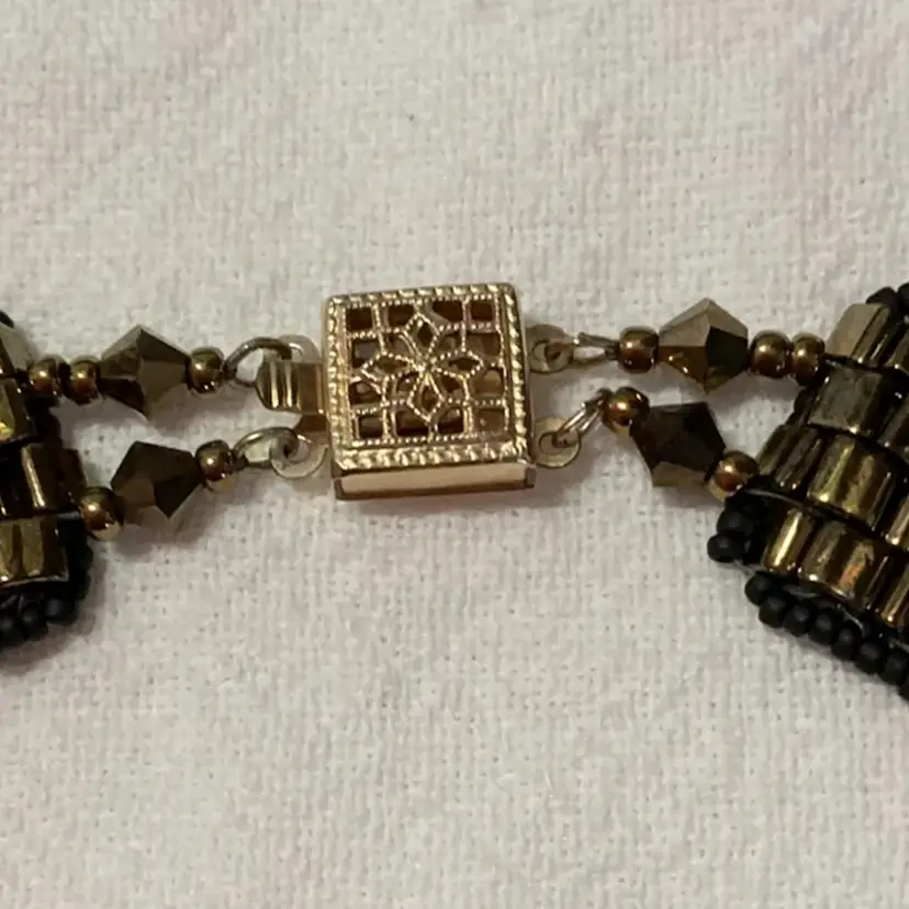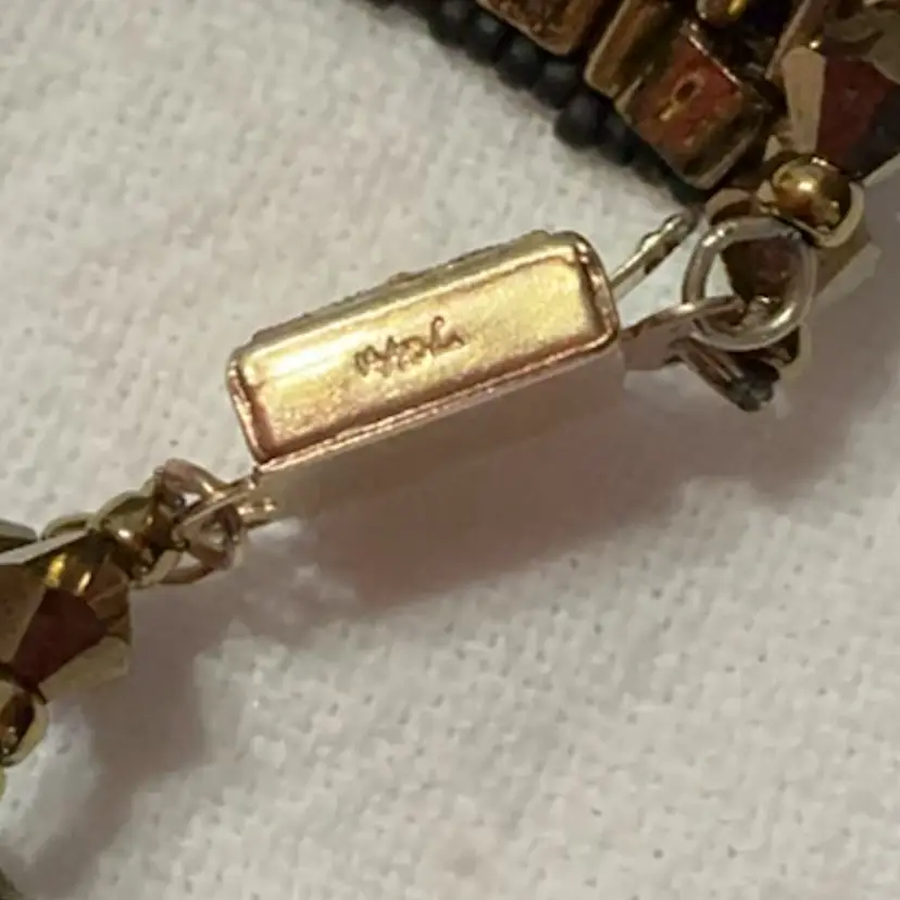 Clasp marked, untested. From an artist's Estate in Southern California. In addition to beadwork, she was a professional porcelain painter.