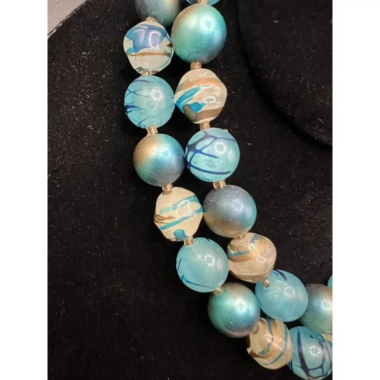 Blue & Gold Glass Beads Hand Painted Mid Century Modern GORGEOUS! Great Estate Find!