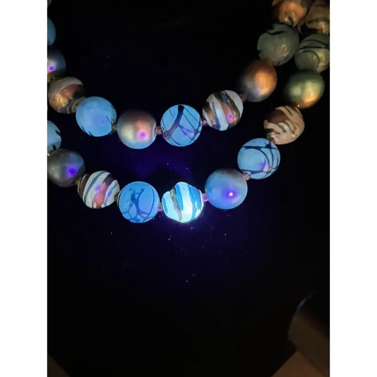 Description: Vintage Czech UV Glow Uranium Glass Necklace