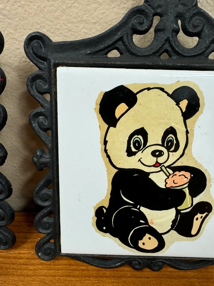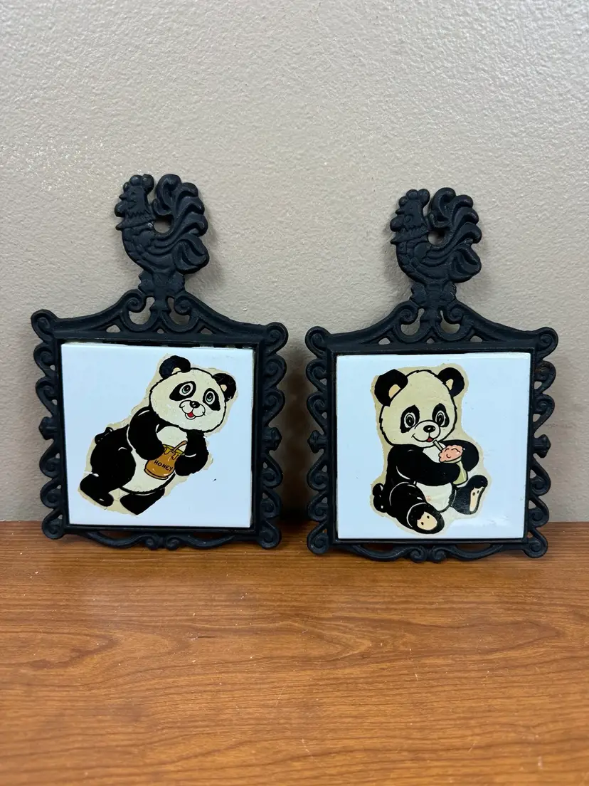 🖤Super cute set of panda trivet. There is some minor markings and scratches.🖤