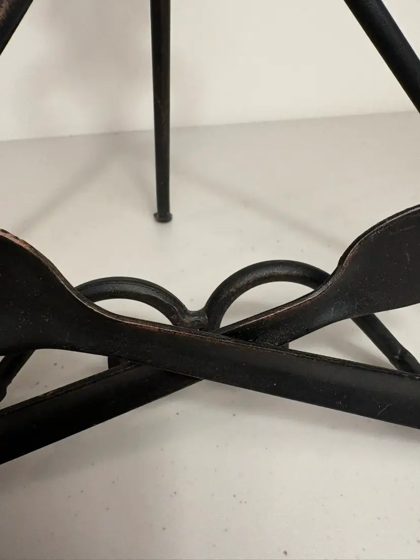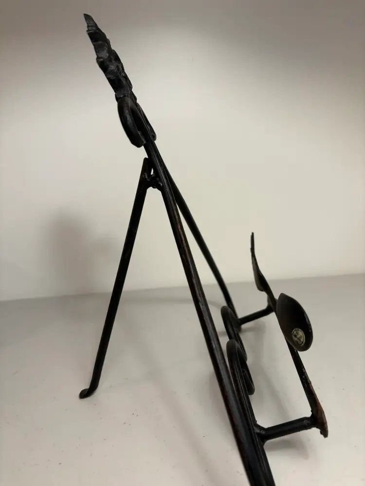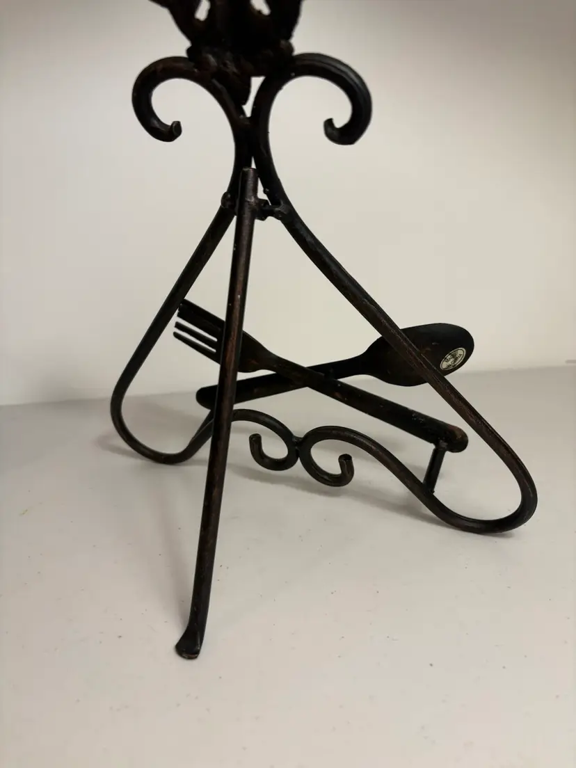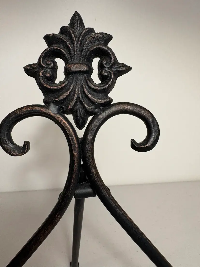 This Wrought Iron Cookbook Holder Plate is a decorative and practical addition to any kitchen. Made of durable black wrought iron, this 10-inch easel stand is sturdy and durable, perfect for everyday use. The horizontal orientation and 9.5-inch length make it easy to hold cookbooks or tablets while cooking. With no additional parts required, this elegant piece is easy to clean with warm water and adds a touch of style to your kitchen décor. Perfect for teens and adults, this cookbook holder is a must-have for any home chef.
