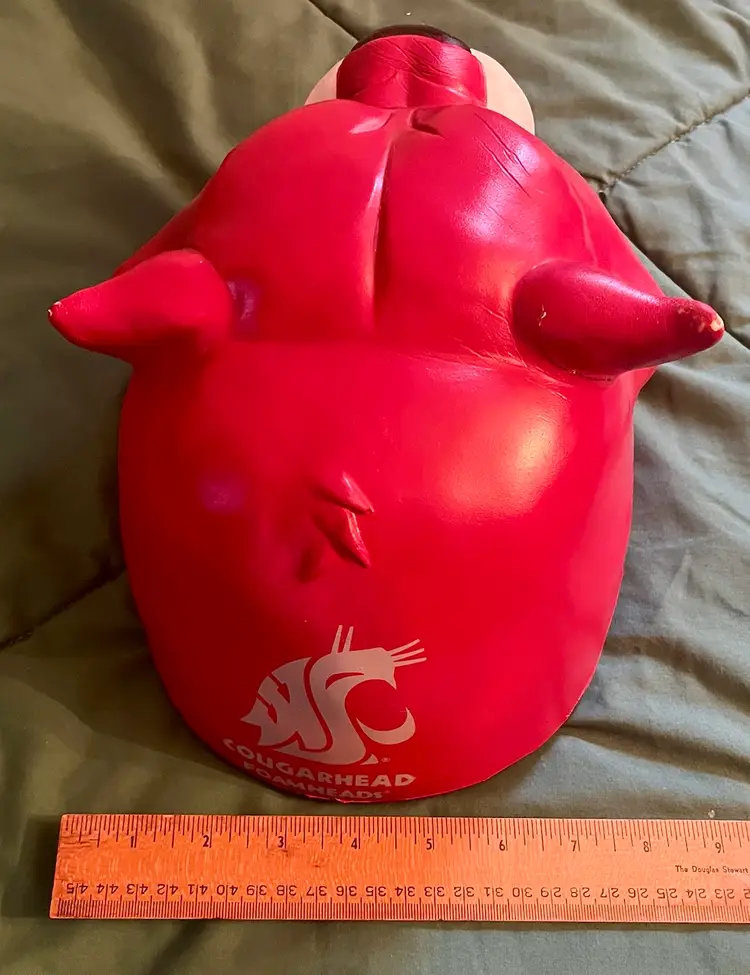 The WSU Washington State University Cougars Butch Mascot Foamhead is an officially licensed product by Foamheads, featuring the iconic crimson red color of the Washington State Cougars team. This unisex adult cap or hat is one size fits all, making it a versatile accessory for any fan looking to show their support for the Cougars in style. Whether you're attending a game, at a Sports Bar, or in your home watching on the TV or Big Screen and just want a fun show of support for your favorite college team, this Foamhead is for you! Weighs: 11.5 ounces.
