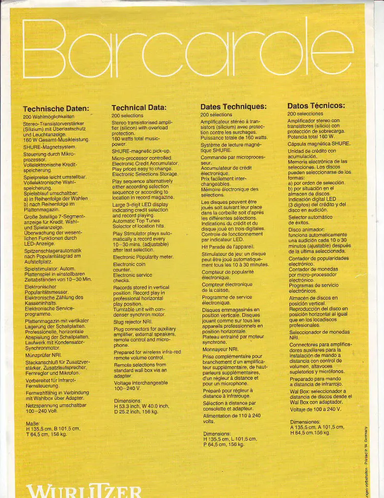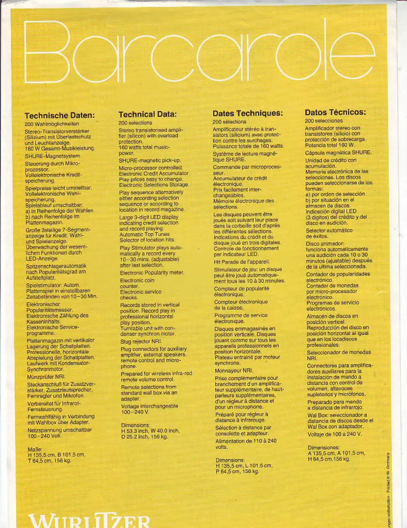 Original Sales Flyer: Advertising Brochure Original/Reproduction: Original Brand: Wurlitzer Modified Item: No Jukebox: Flyer