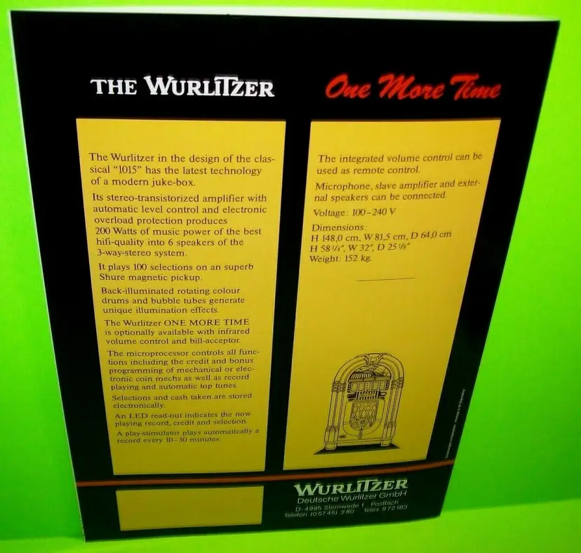 Brand: Wurlitzer Jukebox: Flyer Year: Unknown Original/Reproduction: Original Country/Region of Manufacture: Germany Modified Item: No