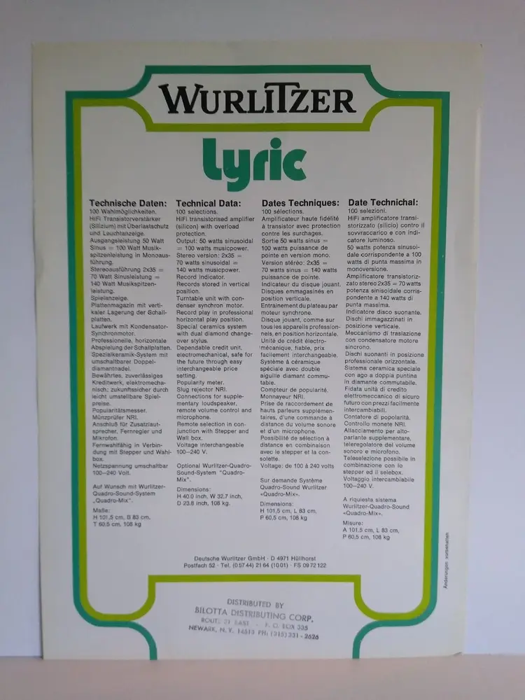 Wurlitzer Lyric Jukebox Flyer Original Phonograph Music Promo Art 8.25" x 11.5