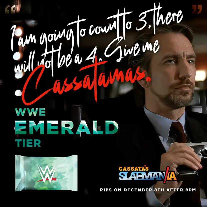 This guarantees you an Emerald Tier Mystery Slab Pack, which contains one graded WWE/Wrestling Card. All Packs rip on December 8th after 8PM EST.
